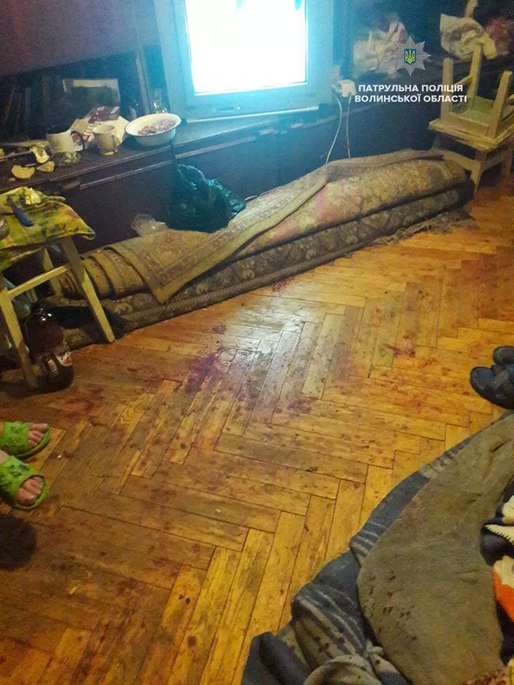 Інспектори прибули за адресою на вулицю Гордіюк, звідки забрали особу. Тут було багато слідів крові, а родичка повідомила, що племінник прийшов з кров’ю, заснув, а потім її кількість збільшилась – і вона викликала швидку.