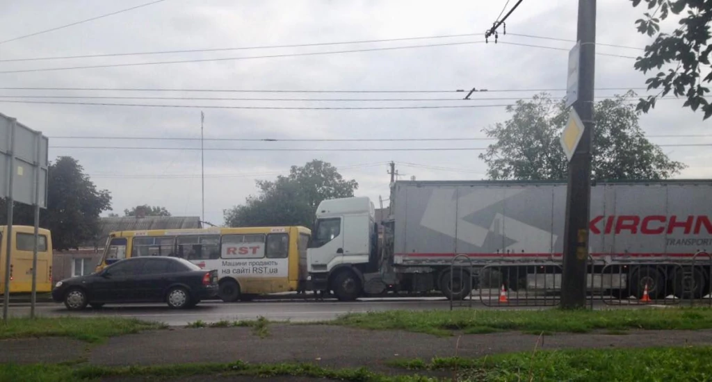На вулиці Ковельській, що у Луцьку, тягач з напівпричепом врізався в маршрутне таксі.