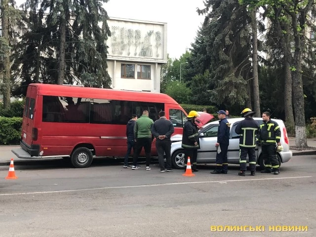 ДТП у центрі Луцька: бус і легковик зіткнулись на зустрічній, є постраждалі