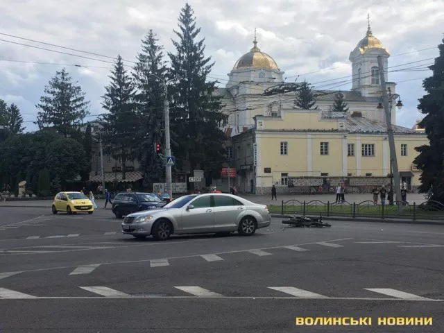 ДТП у центрі Луцька: мотоцикліст врізався у Мерседес