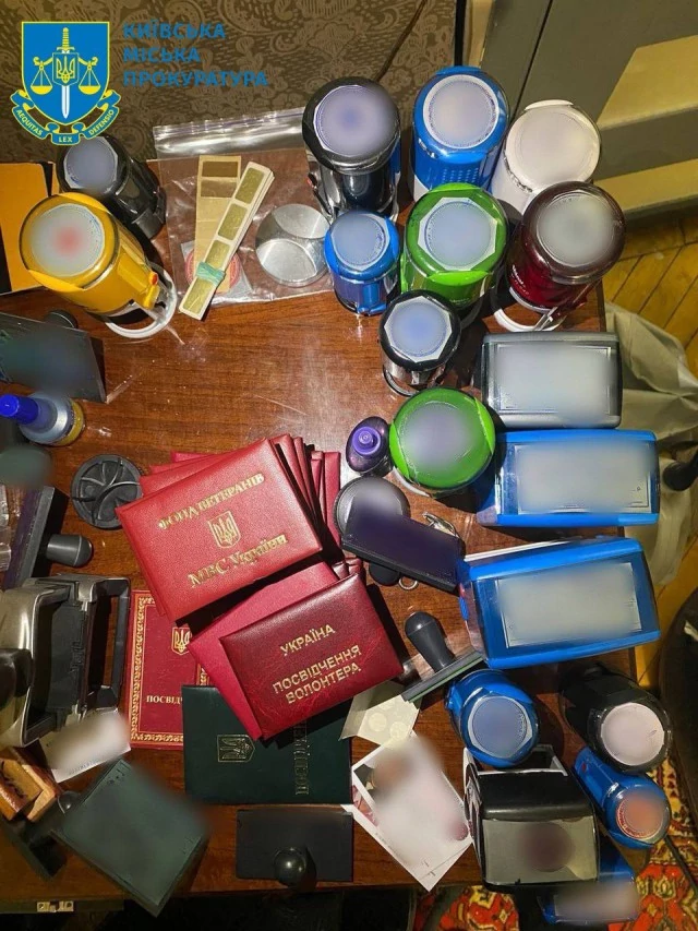 У колишнього волонтера під час обшуку вилучено документи, які підтверджують незаконну видачу понад 300 підроблених посвідчень працівників-волонтерів Печерської районної організації Червоного Хреста, підроблені посвідчення волонтерів, а також амфетамін. Йому повідомлено про підозру у шахрайстві, підробленні та збуті посвідчень волонтера, незаконному використанні символіки Червоного Хреста та незаконному зберігання амфетаміну (ч. 2 ст. 190, ч. 3, 4 ст. 358, ст. 445, ч. 1 ст. 309 КК України).