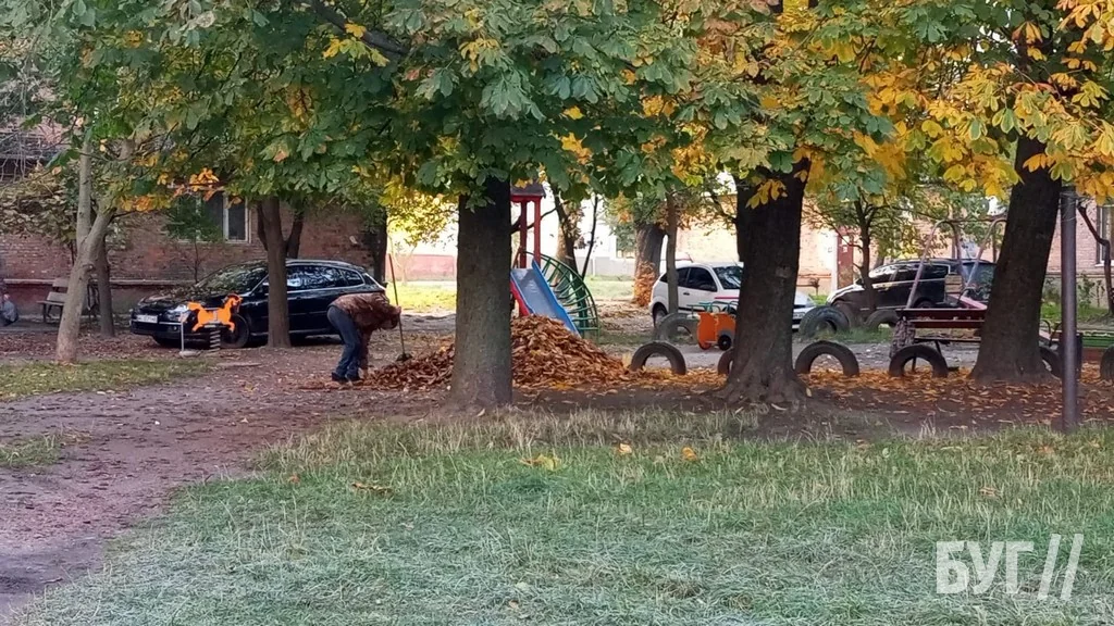 На фото — знайома кожному осіння картина: двірник, озброєний граблями, згрібає пожовкле листя у дворі. Падолист — гарна пора для фотографій, але не для тих, хто щодня прибирає двори, тротуари й парки. З настанням перших приморозків роботи в комунальників побільшало — листя осипається масово, вкриваючи все навколо яскравим, але слизьким килимом.
