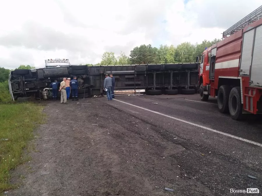 Фура, яка перекинулася на бік, перегородила трасу Луцьк-Ягодин