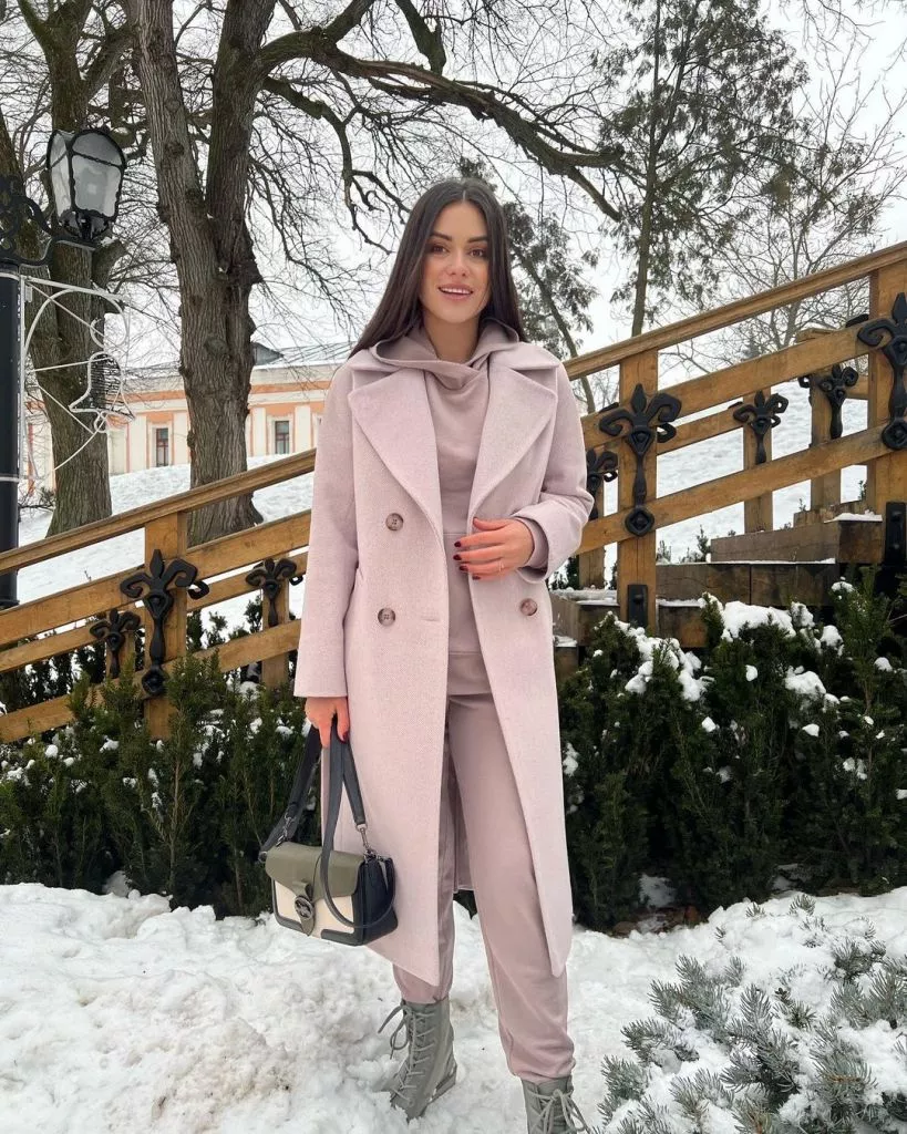 Будь-який образ доповнить стильне пальто світло-рожевого відтінку з англійським коміром. Одягайте улюблені спортивні штани і худі, а також грубі черевики і вирушайте на прогулянку, або ж підберіть під нього лаконічну сукню, ботильйони на високих підборах і маленький клатч – для походу в театр.