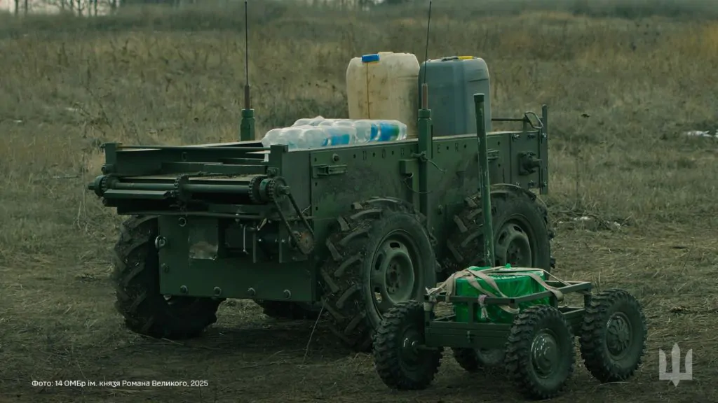 Дистанційно “Гномик” та “Плюсик” керують бойовими платформами, що встановлюють міни та підривають російські позиції. А для побратимів доставляють харчі, боєприпаси та інше забезпечення.