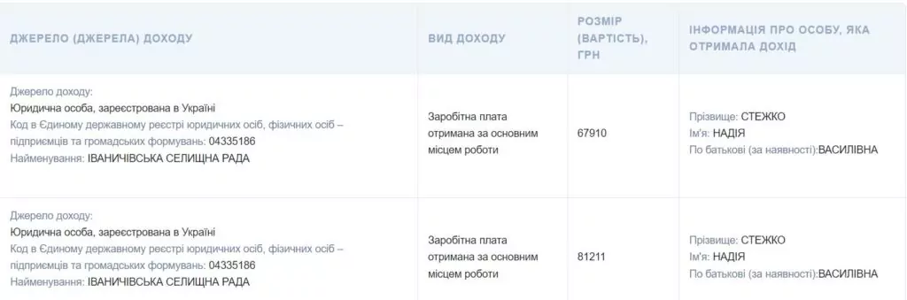 Що задекларували старости Іваничівської громади Надія Стежко і Лариса Дердюк