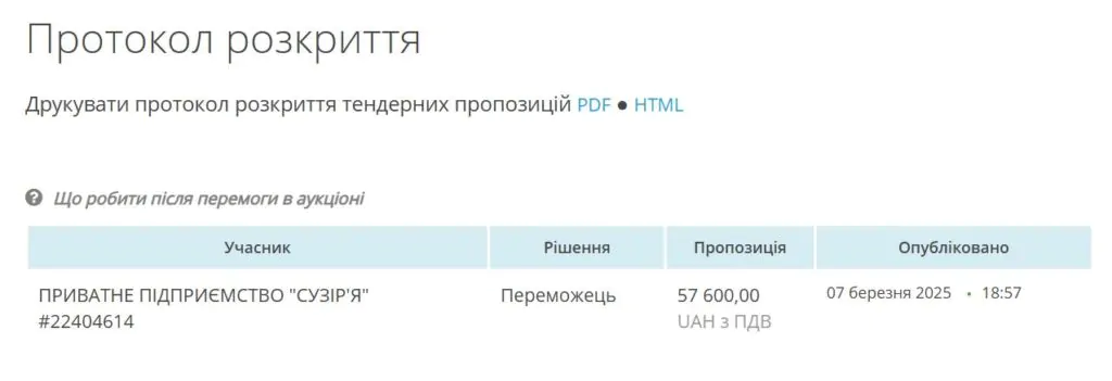 Окрім цього, закупівля відбулася без використання електронної системи, тобто без проведення відкритих торгів і конкурентного аукціону між постачальниками. З підприємцями просто підписали договір на доставку продуктів.
