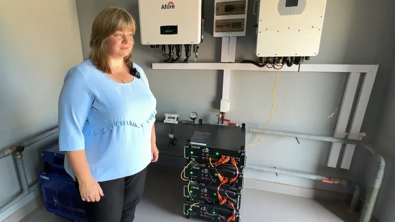 “Коли сонячна погода, ця станція генерує і ми заживлені суто вже з сонячної енергії, яку генерує станція, — каже голова Литовезької сільради. — Якщо сонця нам не вистачає, то в мережу підтягується електроенергія з акумуляторів”.