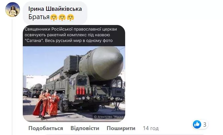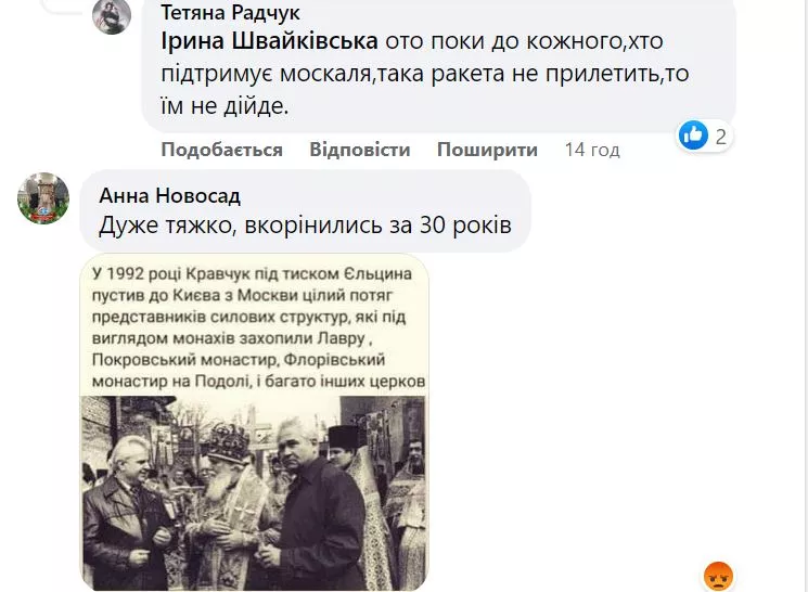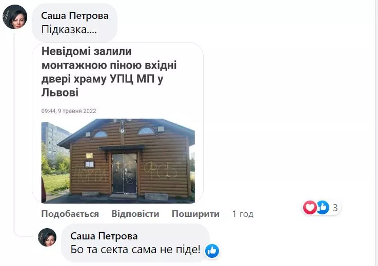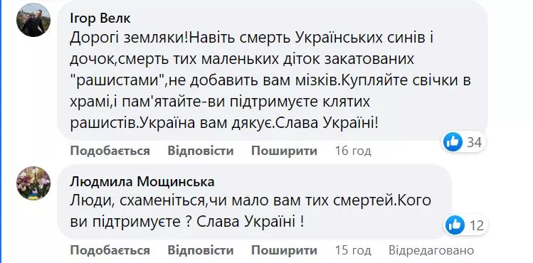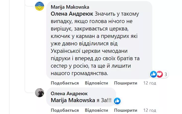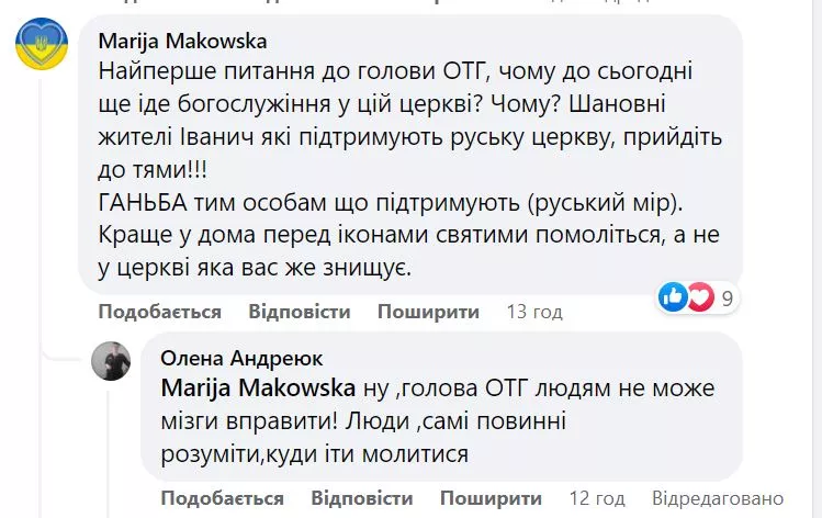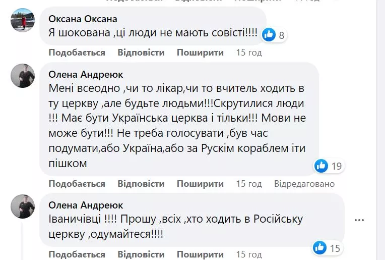 Люди не розуміють, як можна лишатися в УПЦ МП, яка керується з росії – країни, яка зазіхає на українські землі та вбиває людей. Також небайдужі іваничівці зазначають, що купуючи свічки в московських храмах, люди підтримують рашистів, які вбивають українських синів і дочок та катують маленьких діток. Окрім цього, прихильників МП закликають одуматися, зробити правильний вибір на користь України і таки перейти в ПЦУ.