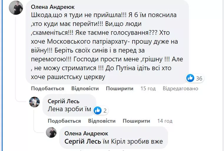 Ті, хто зараз піднімають церковні питання є диверсантами. На війні воюють воїни УПЦ і гинуть також, навіть священників. Повна брєдятіна про свічки. І про все інше. А голосувати мають ті, хто ходить у церкву постійно. Щоб знати, що відбувається в церкві, потрібно туди ходити. ВЄвангеліє Христос закликав молитися за ворогів. Коли б усі молилися, каялися в гріхах, то війна скоріше б закінчилася. Слава Богу