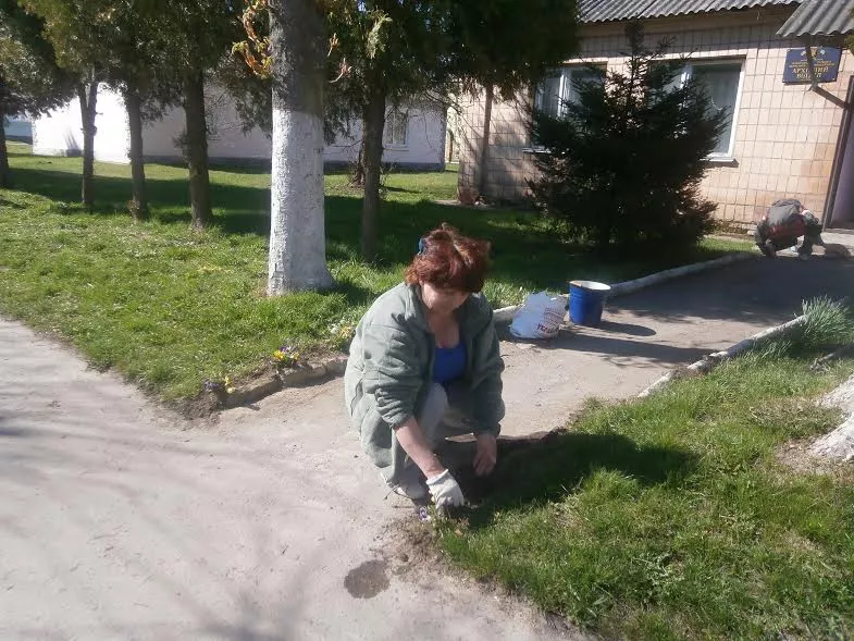 Гуртом прибирали територію біля адмінбудівель: підмітали доріжки, висаджували квіти. Трудилися дружно і завзято.