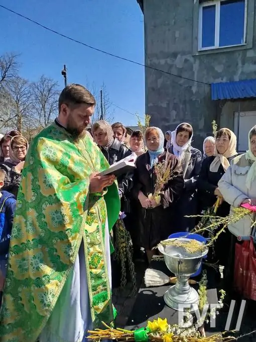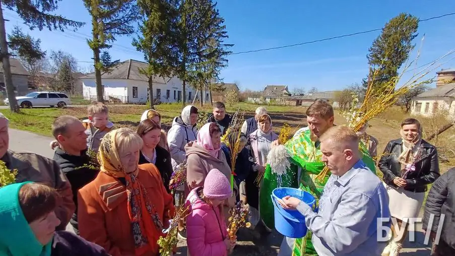 Після урочистої служби, яку в храмі Покрови Божої Матері провели митрофорні протоієреї, отці Андрій та Василь, а в Пантелеймонівській церкві отець Ярослав, відбулося освячення вербових букетиків. На вулиці обабіч храмів вишикувалися сотні жителів селища. Усі вони, від дорослих і до маленьких, тримали у руках гілля верби. В багатьох воно було прикрашене синьо-жовтими стрічками та ранніми весняними квітами.