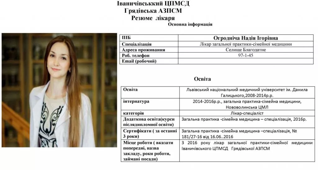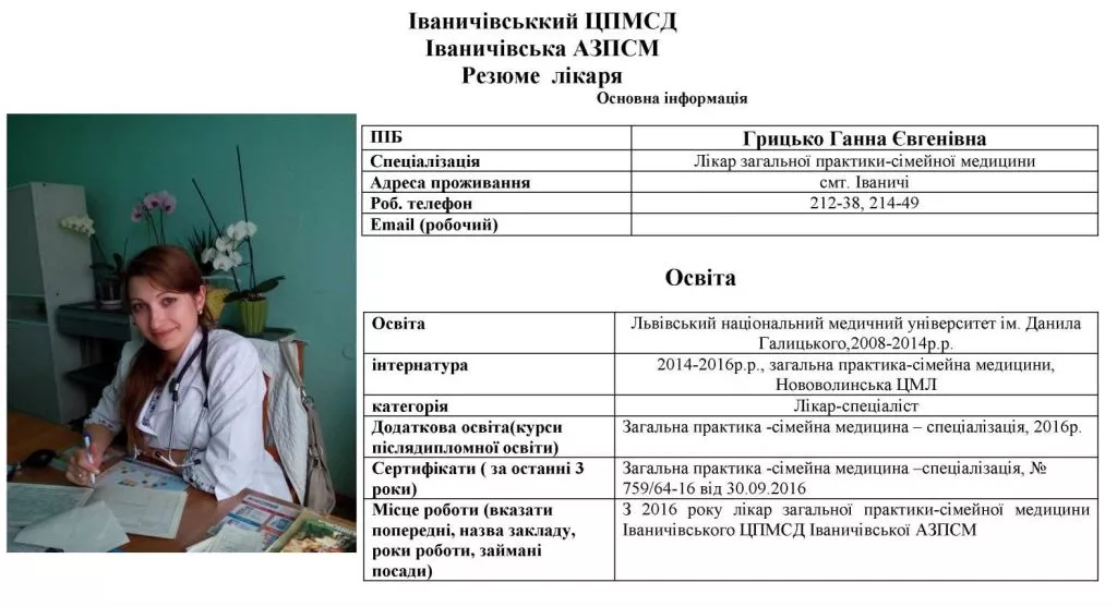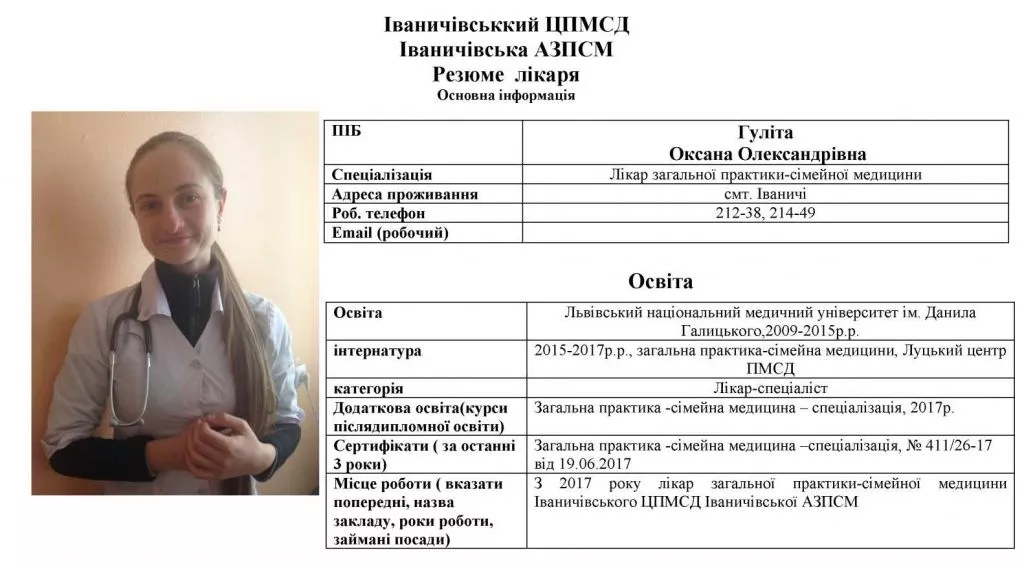 Іваничівщина: резюме сімейних лікарів, з якими мешканці можуть укласти договір