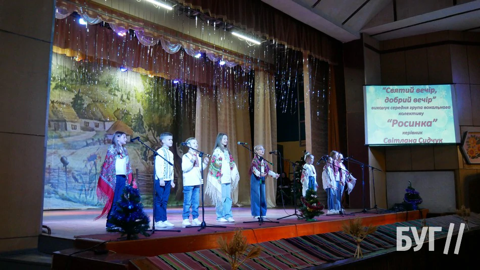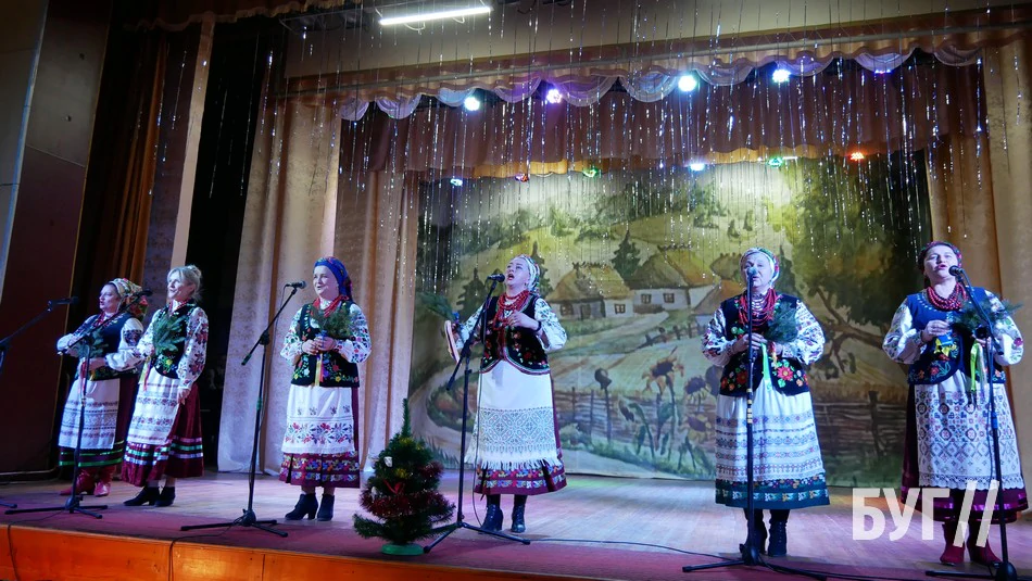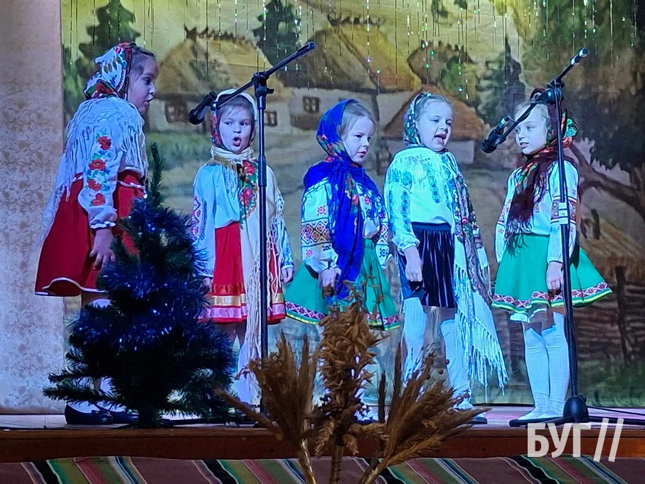 За доброю християнською традицією, захід розпочався з благословення настоятеля Свято-Покровського храму отця Андрія. Опісля різдвяний концерт відкрила вокально-хореографічна композиція «Щедрик-ведрик», яку виконали вокальний колектив «Росинка» та учасники зразкового аматорського ансамблю танцю «Прибужаночка». Зачарували глядачів зворушливим виконанням різдвяних пісень народний аматорський жіночий вокальний ансамбль «Чарівниця» та народний аматорський жіночий вокальний ансамбль «Калинонька» клубу села Древині.