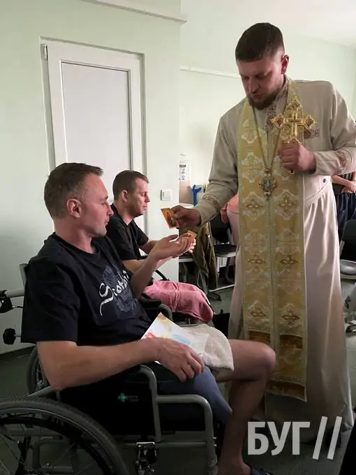 Зустріч пройшла в теплій душевній атмосфері. Волонтери та священник поспілкувалися з пораненими воїнами, подякували за захист нашої держави, привітали зі Світлим Христовим Воскресінням та побажали їм міцного здоров’я, сил, терпіння та наснаги у подоланні всіх труднощів та випробувань, а ще, щоб над їхніми головами було мирне небо, на душі – спокій, поряд – рідні та друзі, душі іскрилися вірою, помисли – добром, а серця – любов’ю.