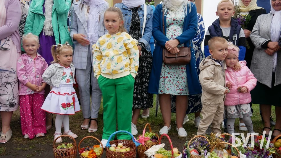 У кошиках, окрім традиційних яблук, груш, слив та винограду люди освятили персики, нектарини, ожину, малину й мед, а ще дехто помідори, моркву й цибулю та інші достиглі фрукти і овочі. У букетиках іваничівців було розмаїття яскравих квітів і цілющих трав: колоски вівса, пшениці й жита, васильки, чорнобривці, калина, соняшник, нігтики, материнка, м’ята, буркун, ласковець, полин, мак, рута і календула.