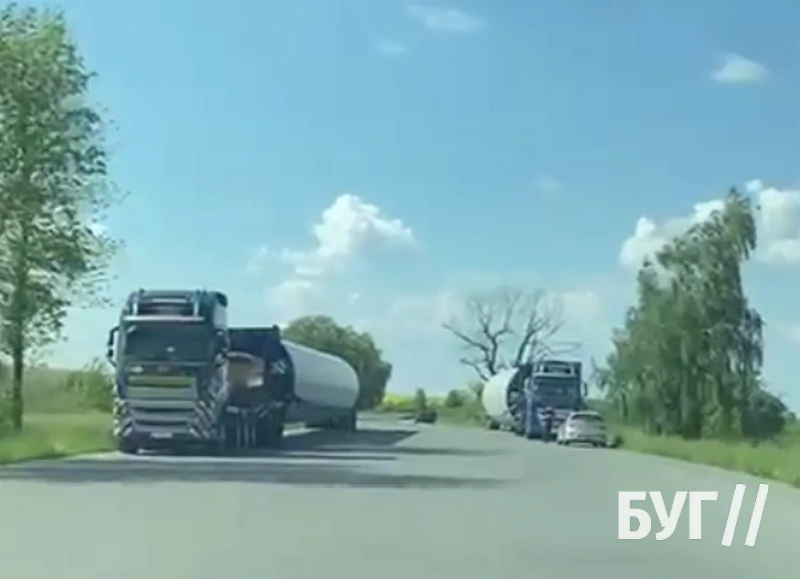 На трасі біля Бубнова помітили вантажівки з частинами вітрогенераторів, які невдовзі встановлюватимуть в Іваничівській громаді