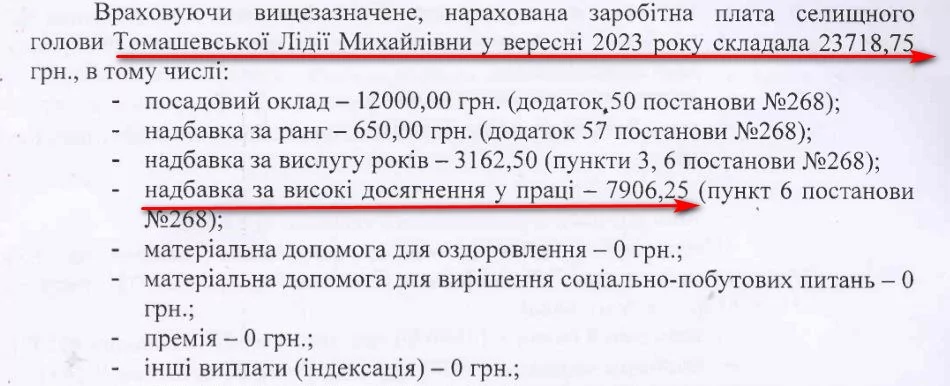 Як бачимо, все залежить від вірності Томашевській, яка виплачує чималі надбавки, як своєрідну “подяку” за відданість. Ймовірно, саме тому поплічники очільниці громади, як і вона сама, продовжують отримувати чималі премії.