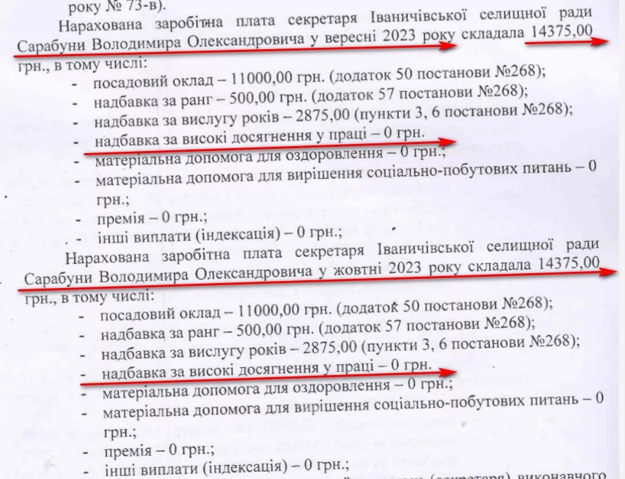 “С”Незручний” секретар селищної ради Володимир Сарабуна за два місяці отримав найменше – 28 тисяч 750 гривень. Ніяких надбавок за високі досягнення в праці чи премій йому не нараховували.