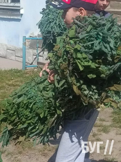 Також для плетіння сіток потрібна тканина різних кольорів і розмірів. Окрім цього необхідні кошти для придбання спеціальної фарби зеленого кольору. Їх можна переказати за реквізитами: