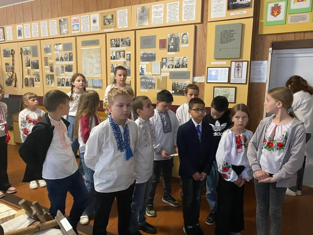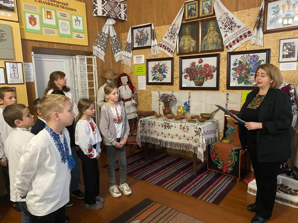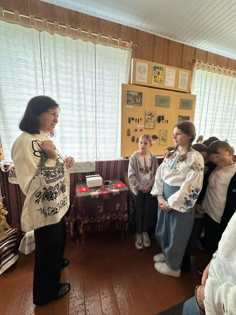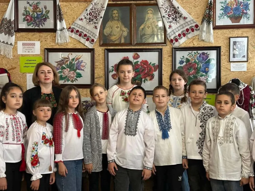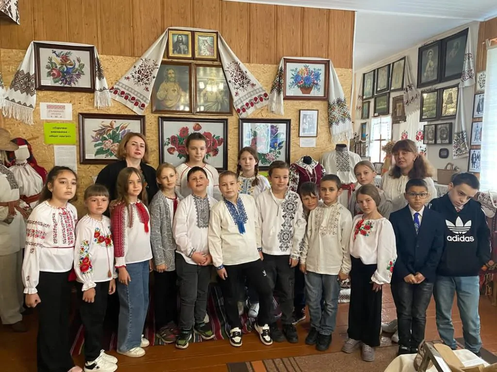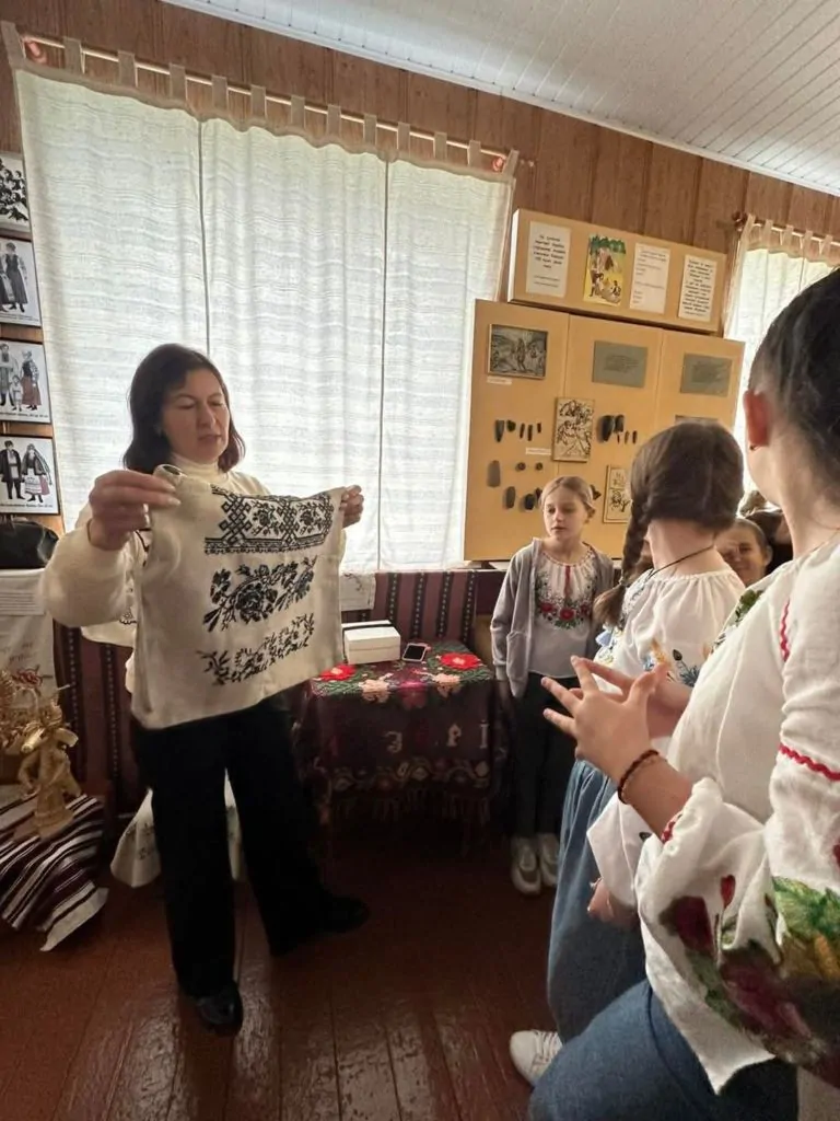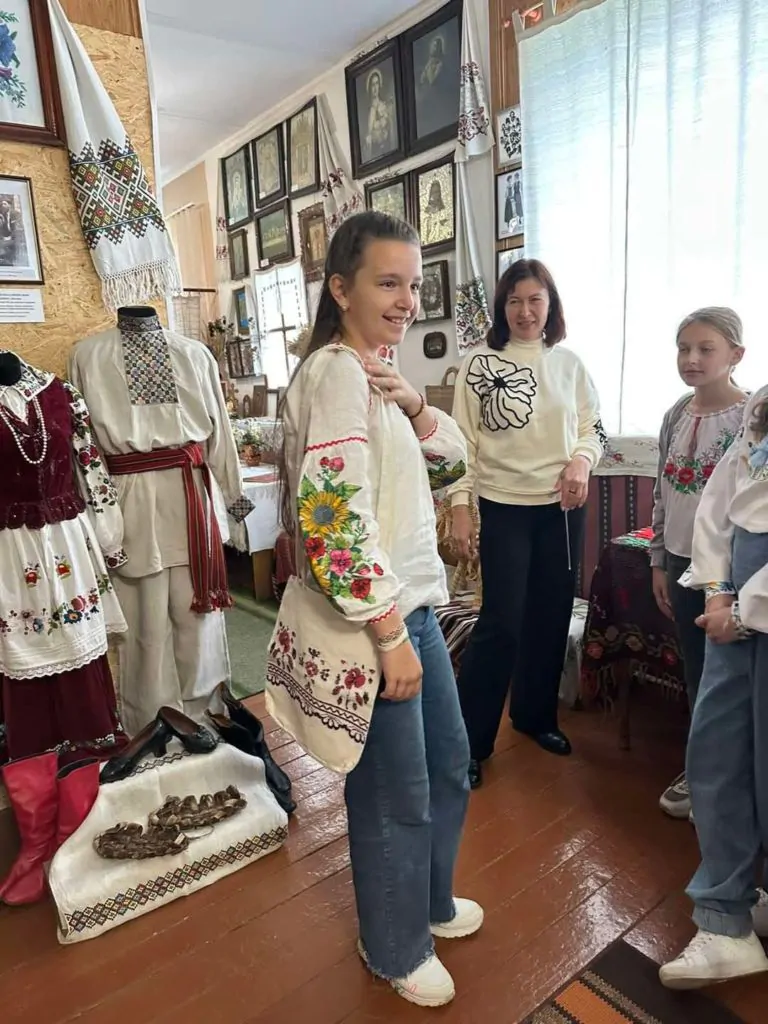 Презентуючи дітям експонати виставки, Лариса Куль наголосила, що вишиванка – це наша історія, мистецтво предків, душа й генетичний код народу, етнічна спадщина, прикраса для тіла і оберіг для душі. А зараз, під час війни, це ще й символ української нескореності і свободи. Тому вишиванний одяг дуже цінний і важливий для нас.
