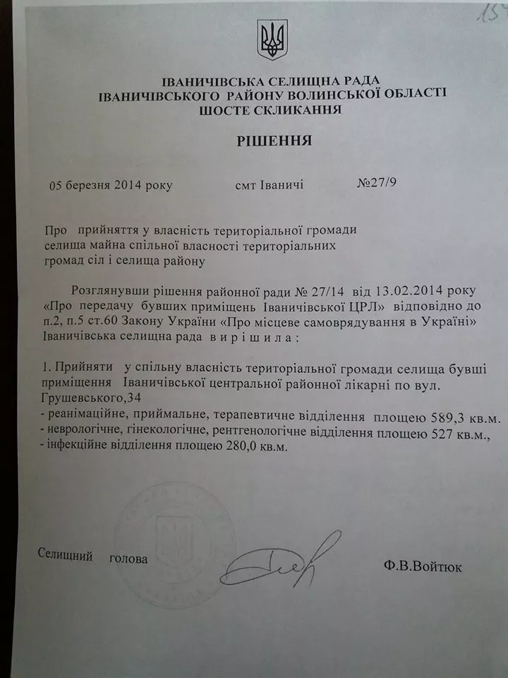 Депутат Микола Холмецький вважає, що районна рада не мала права виставляти це приміщення на відчуження для продажу, тому що де-юре воно було передане Іваничівській селищній раді у 2014 році. Іваничівська селищна рада своїм рішення підтвердила, що вона приймає його у власність громади.