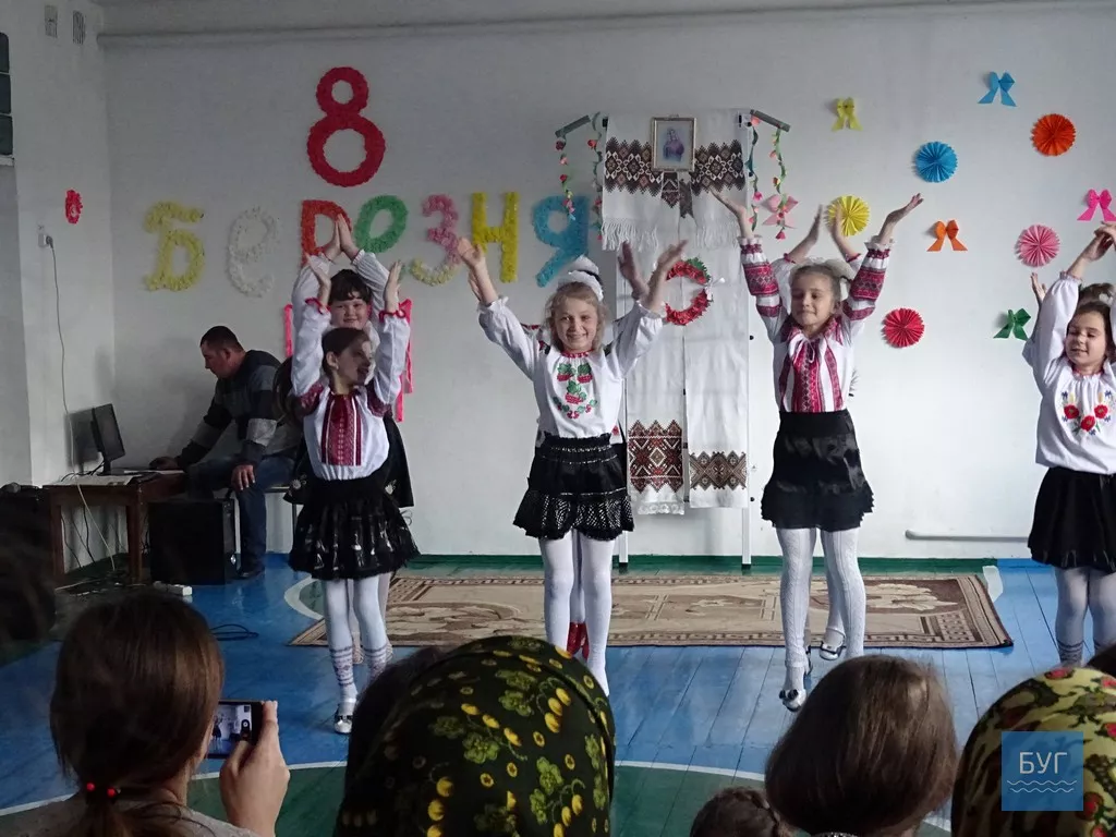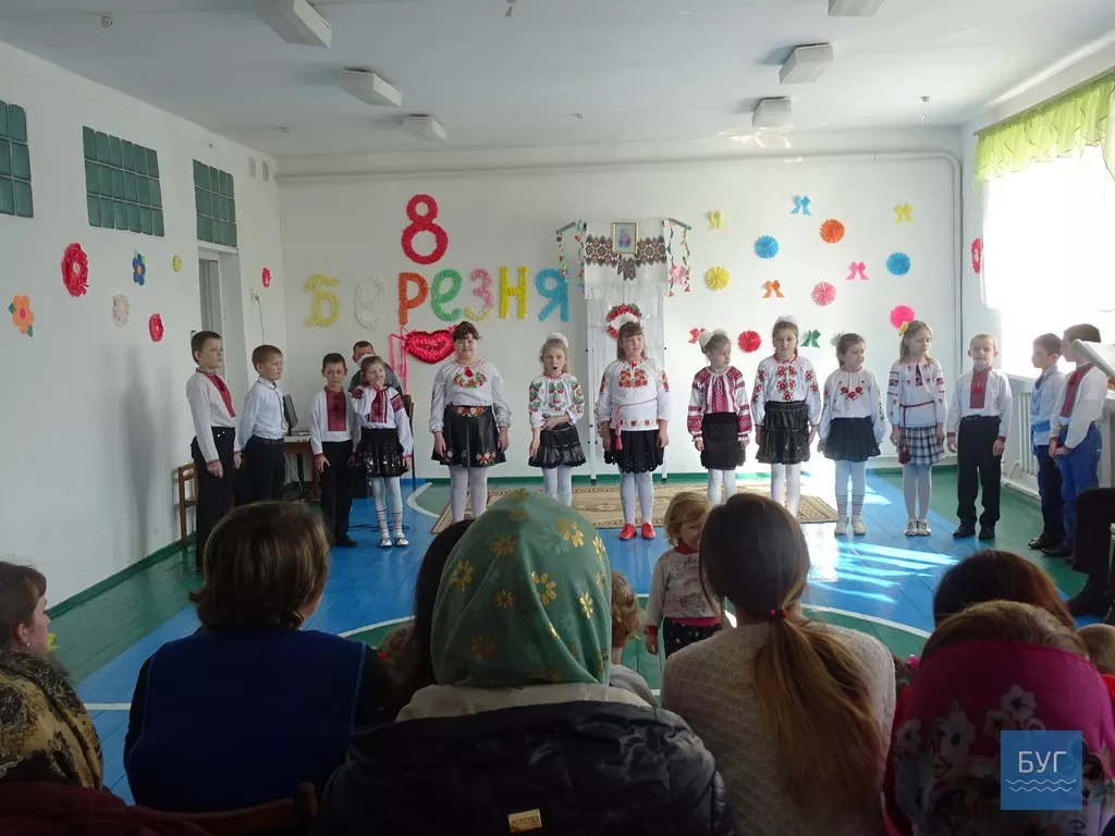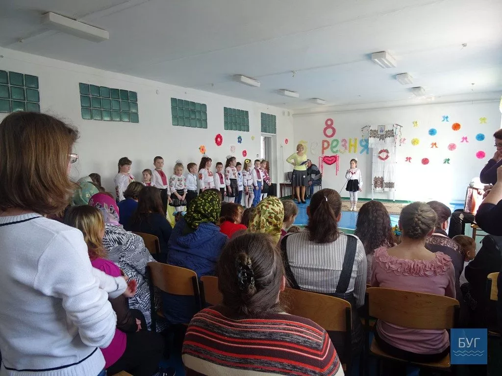 “Свято весни і всіх жінок”- так назвали захід. У залі мами і бабусі. Діти у вишиванках. Прикрашена уявна сцена на свято 8 Березня. Лунають дитячі пісеньки у виконанні хлопчиків і дівчаток, а також діти показують себе у танці, цікавим є дійство першого дитячого захоплення. Виступи яскраві і, з реакції залу, сподобалися присутнім.