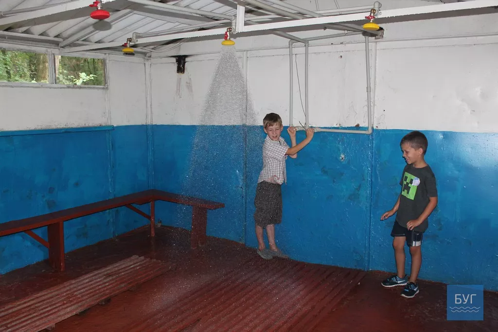 Після завершення лінійки діти охоче показали, де вони проживають. А також провели і продемонстрували, як працюють душові, перевірили, чи нагрілася вода у міні басейні. Гості поцікавилися, як працює кухня та яке меню для дітлахів.