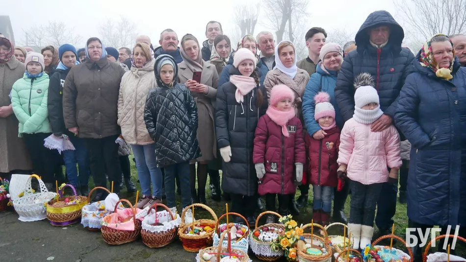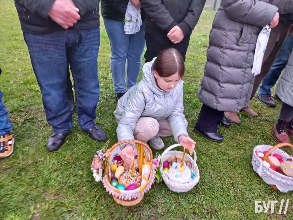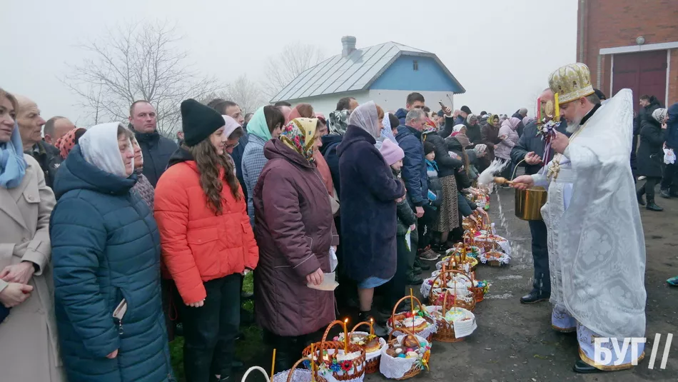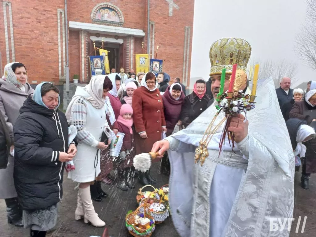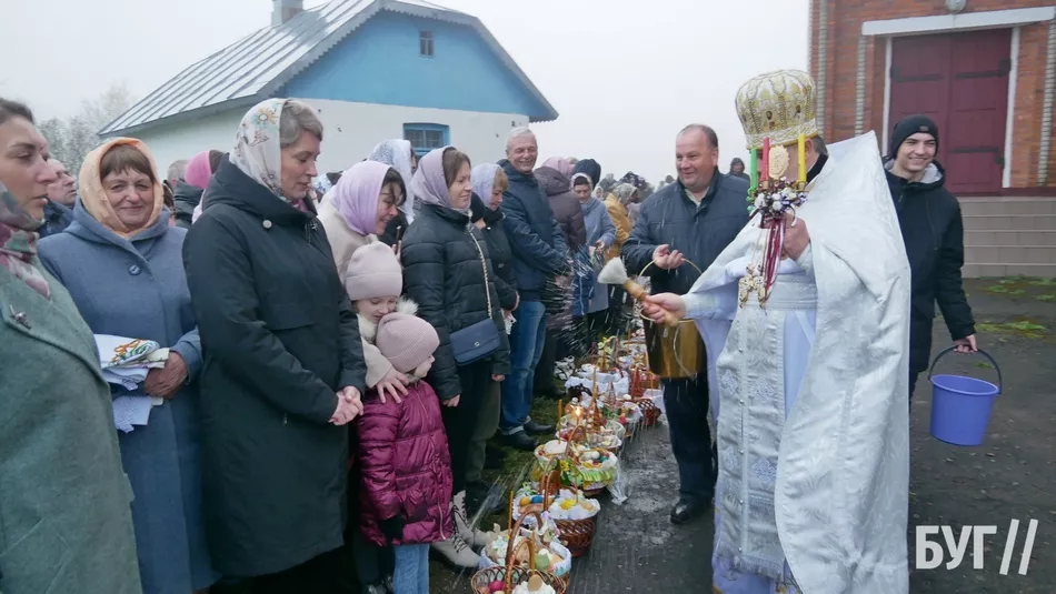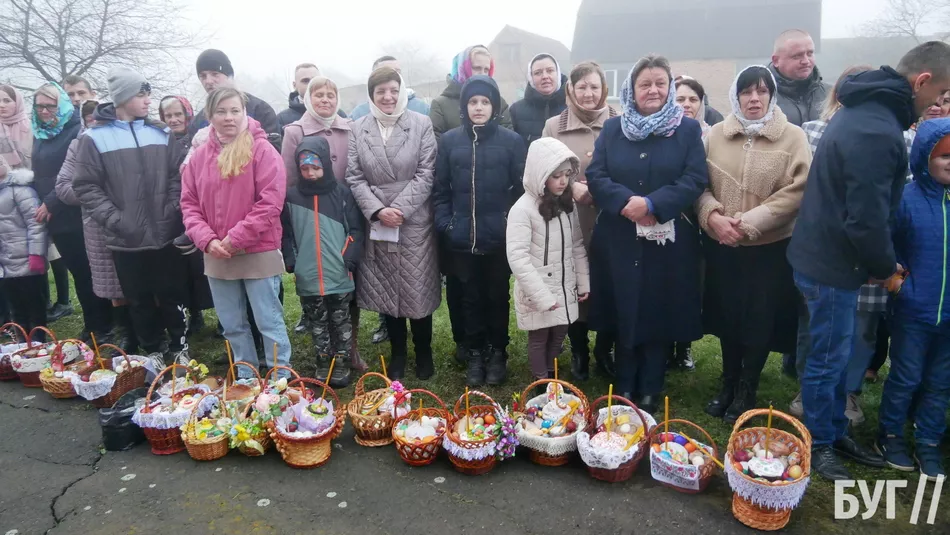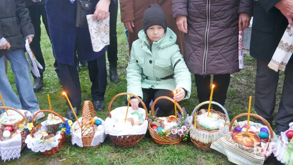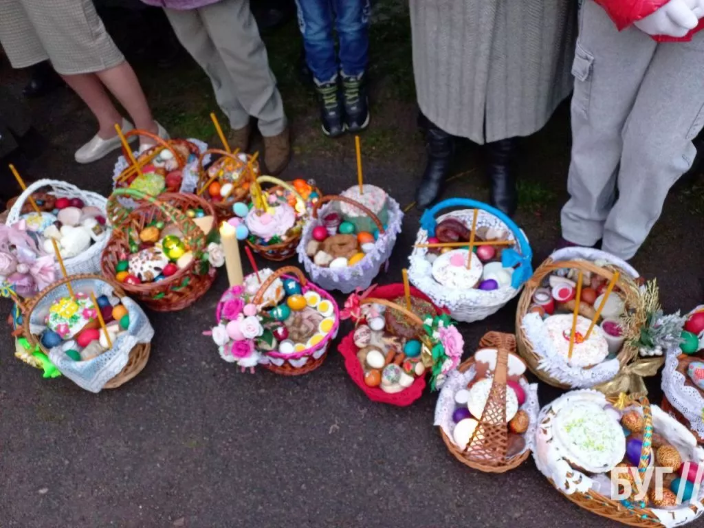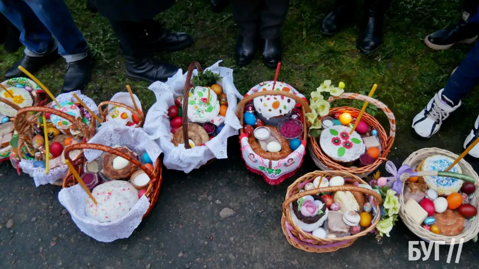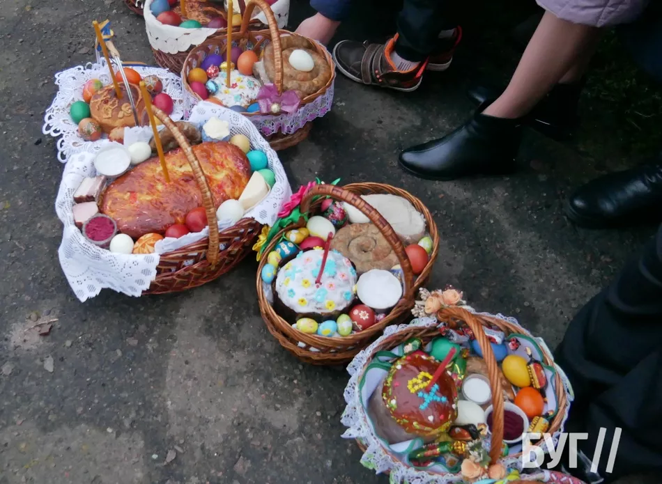 У кошиках, окрім традиційних паски і фарбованих яєць, люди освятили сир, масло та ковбасні й м’ясні вироби.