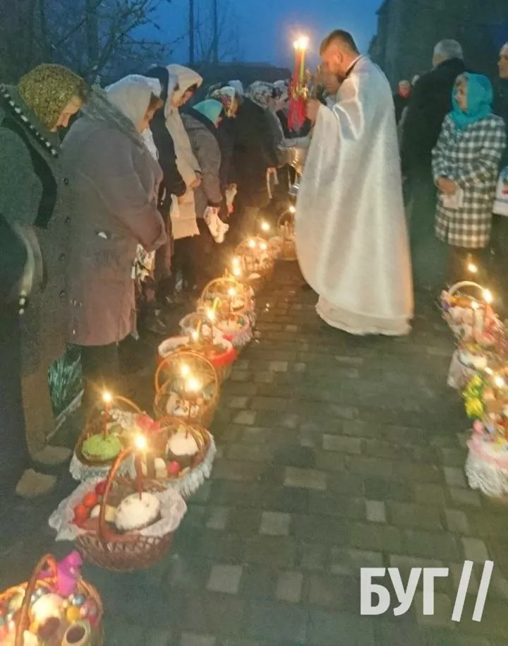 У Великодню ніч, з 15-го на 16-те квітня, мешканці Іванич відвідали святкові богослужіння в місцевих храмах та освятили великодні кошики.
