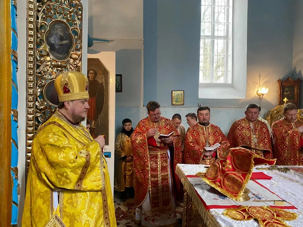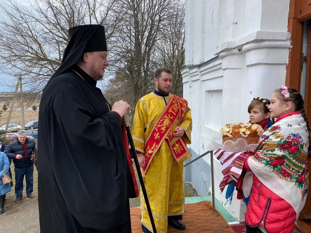На території храму його зустріли парафіяни та діти. За літургією єпископу співслужили: секретар єпархії протоієрей Юрій Зінчук, благочинний, настоятель храму протоієрей Василь Мавдрик та Володимир-Волинське, Оваднівське і Ковельське духовенство.