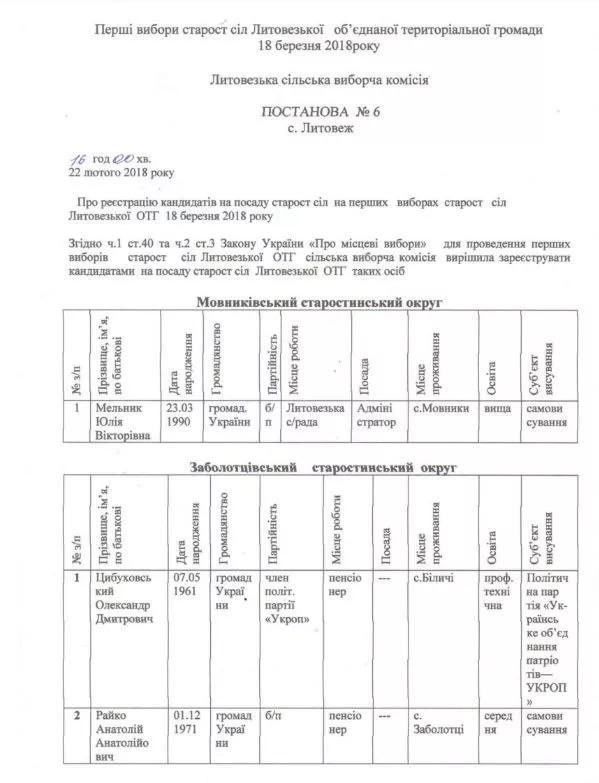 Загалом у територіальній громаді мають обрати трьох старост. У Мовниківському старостинському окрузі та в Заставненському зареєструвалися лише по одному претенденту. А вже в Заболотнівському окрузі буде йти змагання між двома кандидатами.