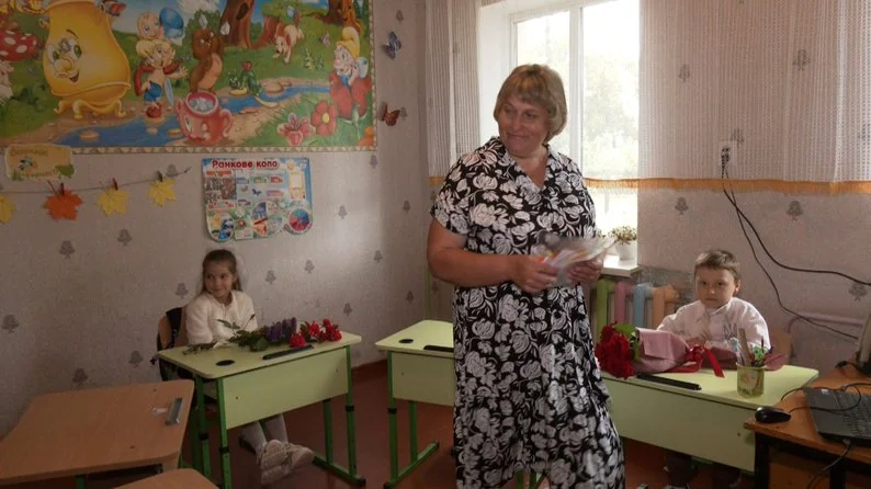 Марія Грицюк вчителює понад 30 років. Вона — одна з тринадцяти педагогів у школі. Каже, що зараз у її класі п’ятеро учнів. Одночасно проводить уроки в другому і третьому класах.