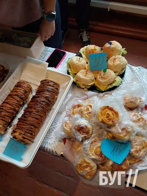 До хорошої справи долучилися практично усі учні ліцею, які разом зі своїми рідними приготували чимало смаколиків, а також вчителі навчального закладу. Столи, які розмістили в холі навчального закладу, “ломилися” від смаколиків: тістечка, тортики, печиво, вафлі, піца, канапе, “корзинки” з різноманітними начинками, желе, хот-доги – чого тільки тут не було!