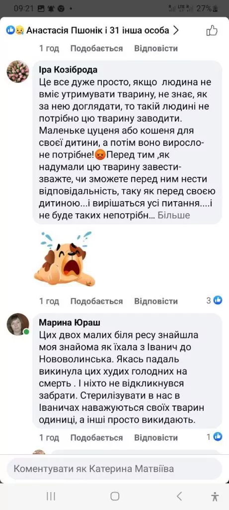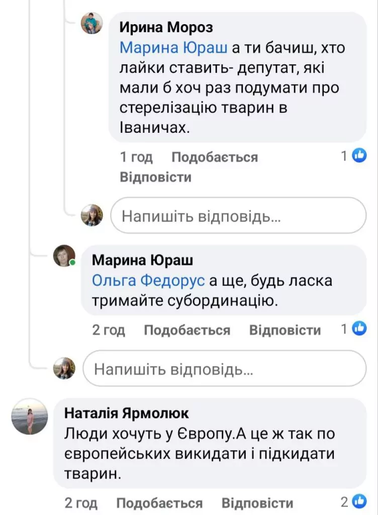 У коментарях Марину підтримало чимало небайдужих жителів селища. Вони підтвердили слова активістки, що в Іваничах останніми днями дійсно побільшало безпритульних тваринок.