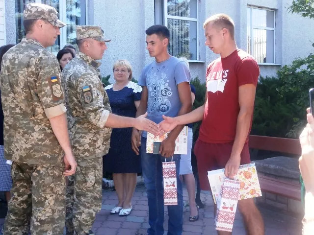 Із напутніми словами до призовників звернувся представник районного військового комісаріату, майор Віктор Зелінський зазначивши, що військова служба є почесним обов’язком кожного громадянина і висловив свої переконання, що перебування в армії надасть їм впевненості, мужності та підвищення фізичного стану. Віктор Юрійович зачитав Указ Президента України Петра Порошенка та вручив військові квитки Миколі Ліщуку та Миколі Лозіну.