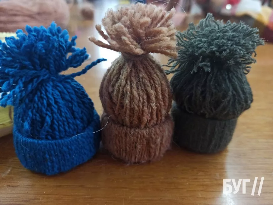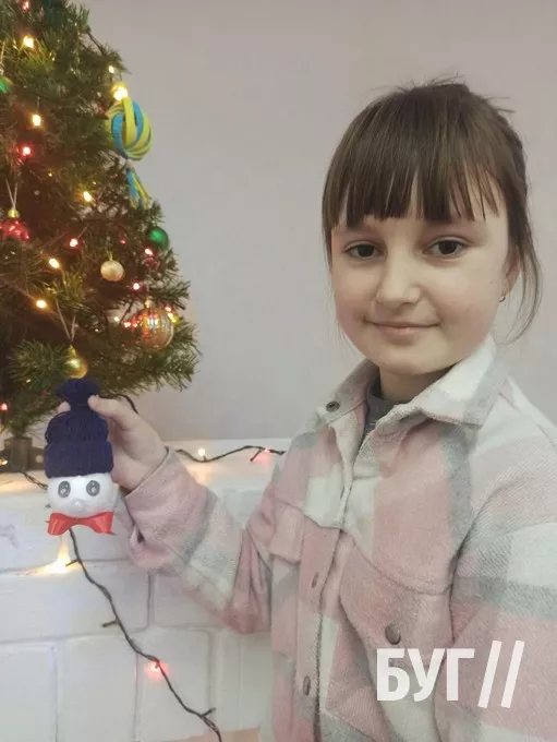 На шостий день роботи Майстерні Святого Миколая діти працювали над створенням новорічної іграшки – голівки сніговичка у шапочці. Спочатку кожна дитина сплела для свого сніговичка симпатичну шапочку з ниток. Далі – розфарбувала йому оченята, прикріпила носик з бусинки і симпатичний бантик. Трішки зусиль під керівництвом талановитих майстринь і чудернацька іграшка на ялинку – готова.