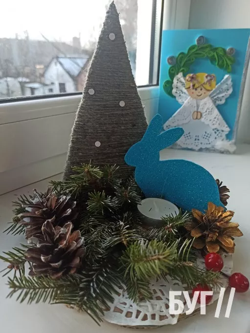 А 14-го грудня у творчій майстерні діти створювали і декорували різдвяну коробку. На підготовлену картонну основу спочатку намотували нитки і їх закріплювали клеєм, далі готували окремо деталі: вирізали фігурки ангелів і зірочки, розфарбовували горішки, шишки й гілочки ялини. Композиція у кожного вийшла гарна і святкова, а це найкращий подарунок для гарного настрою.