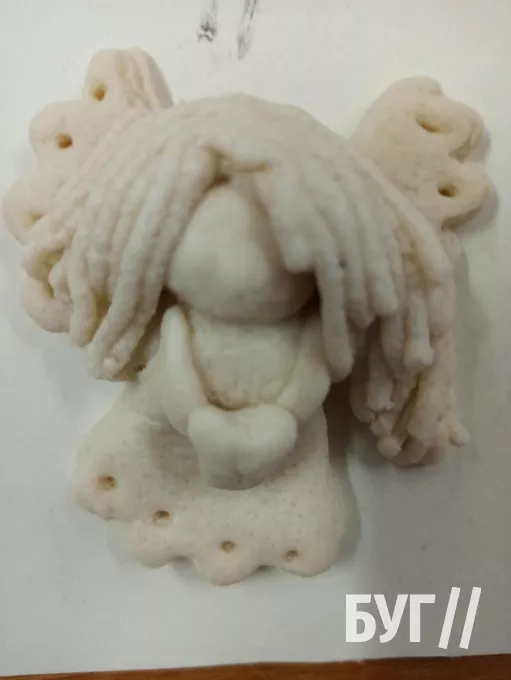 Кожен охочий зміг спробувати зліпити з такого тіста фігурку “Ангелика” і розмалювати уже готові підсушені вироби. Результат перевершив усі очікування – фігурки вийшли, як справжні витвори мистецтва. Діти проявили себе в ролі як кулінарів, так і художників.