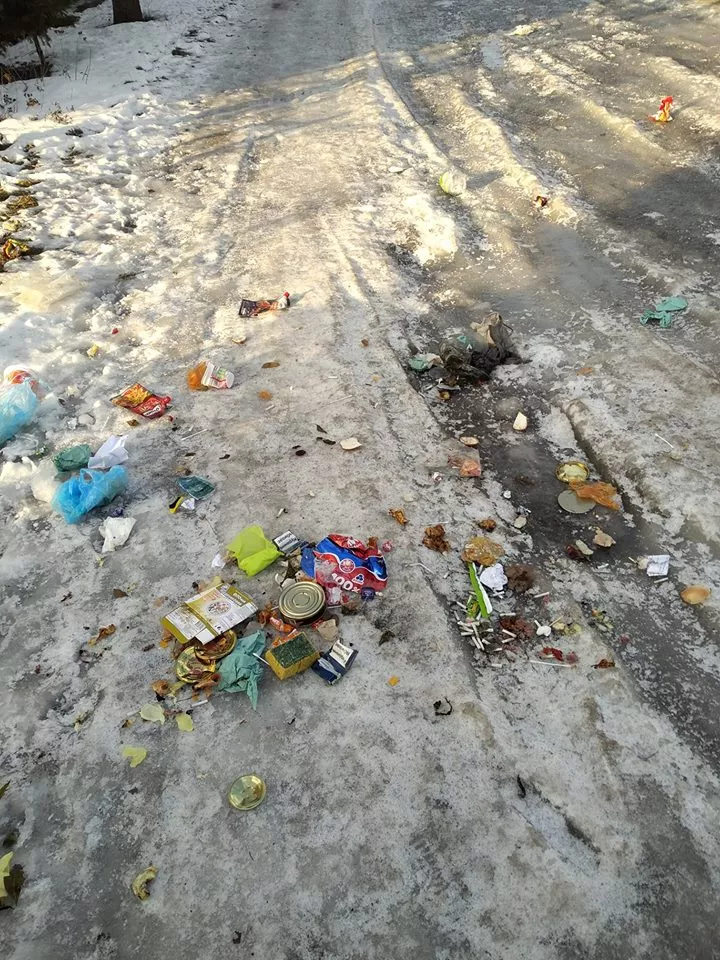 “Ці фото зроблені на нашій центральній вулиці, біля будинків навпроти універмагу. Вчора йшла на урочистості до Дня Соборності – лежать гори сміття. Я просила: коли забирають непотріб, хай беруть з собою відро і шуфлю. Вони забрали пакети, а це все залишили лежати під нашими вікнами”, – говорить Козак.