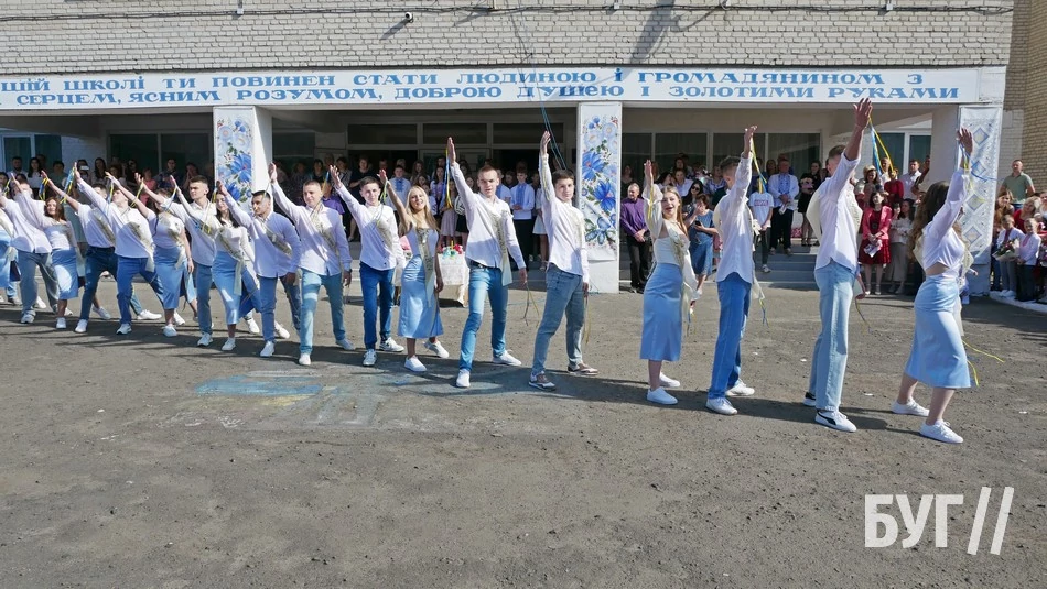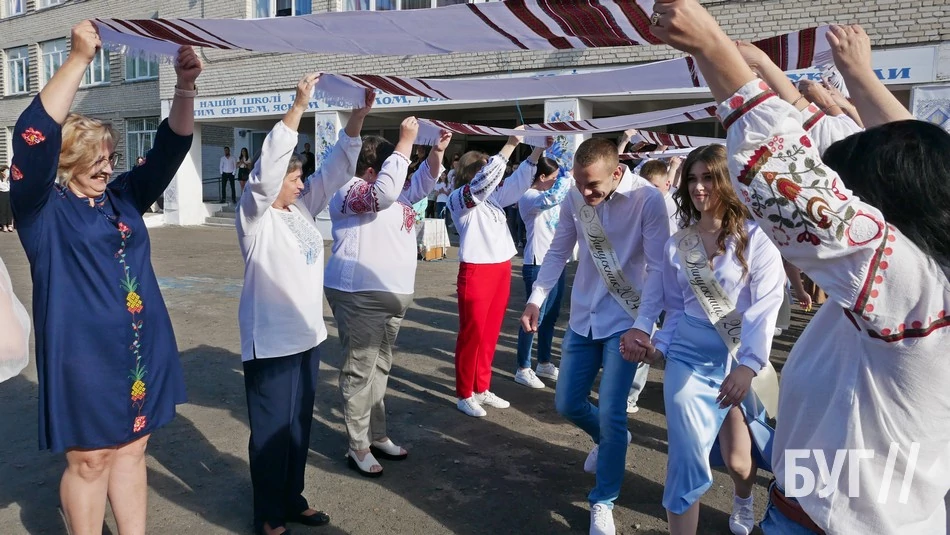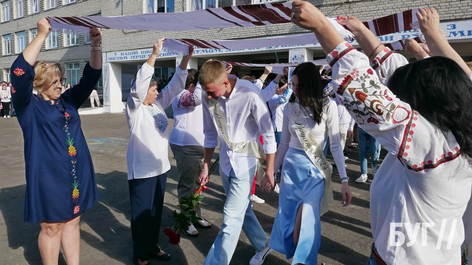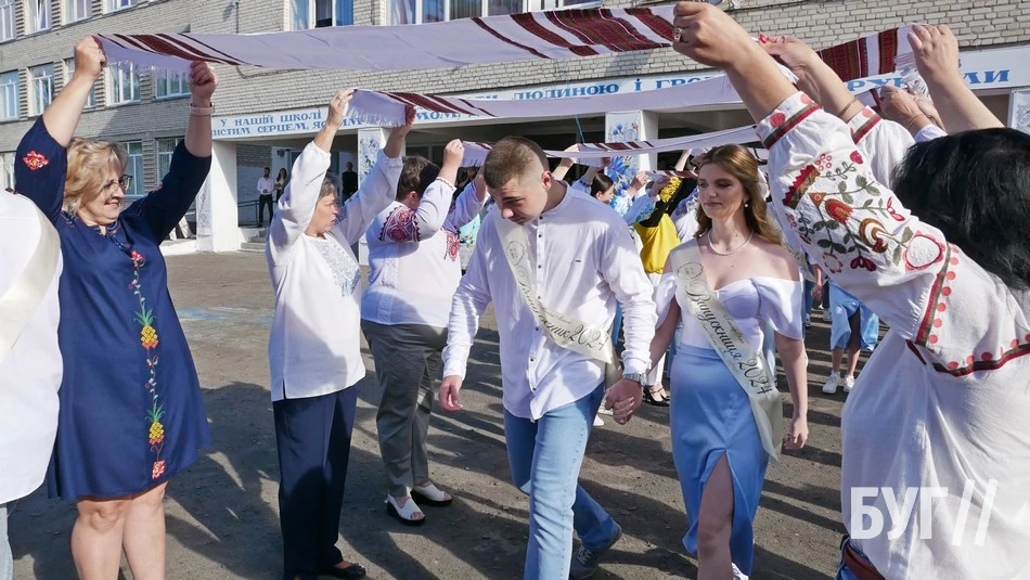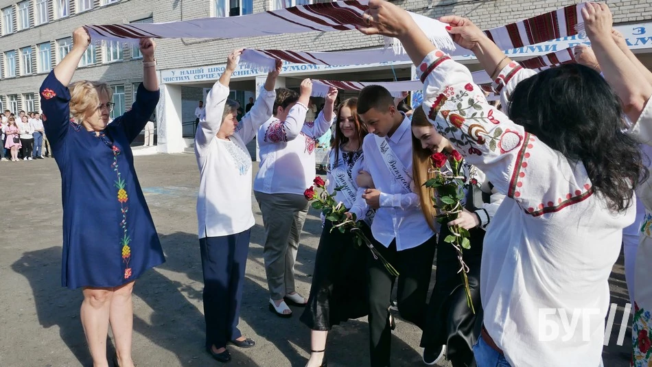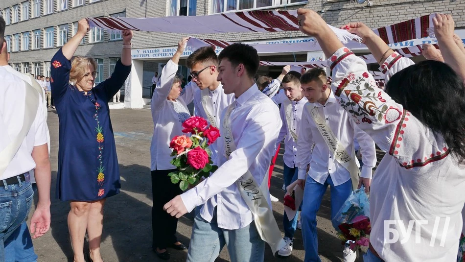 Зі Святом останнього дзвінка випускників привітали 10-класники та вручили їм пам’ятні дзвіночки, а від своїх батьків у подарунок одинадцятикласники отримали вишиті рушники.