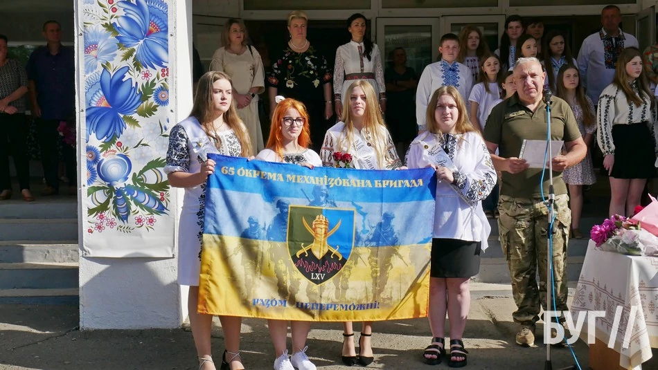 Під час святкової лінійки свої вітання, подячну грамоту і прапор своєї військової частини передало випускникам командування 65-ої окремої механізованої бригади. В такий спосіб військові висловили свою вдядність за допомогу.