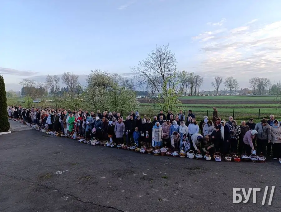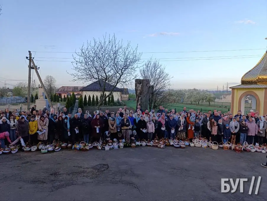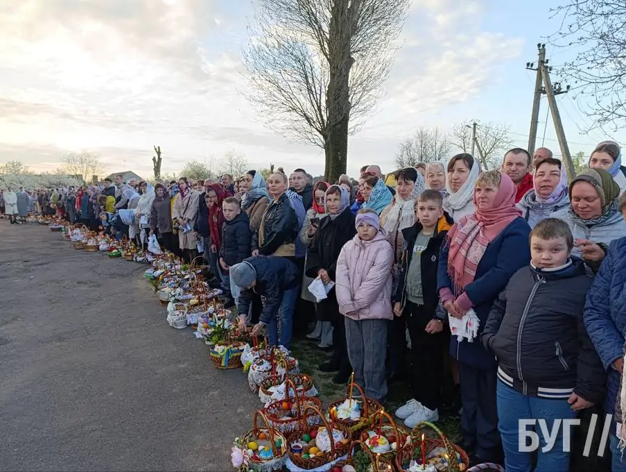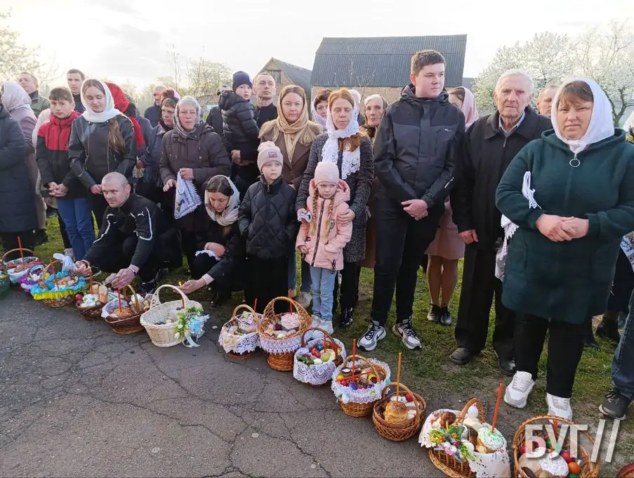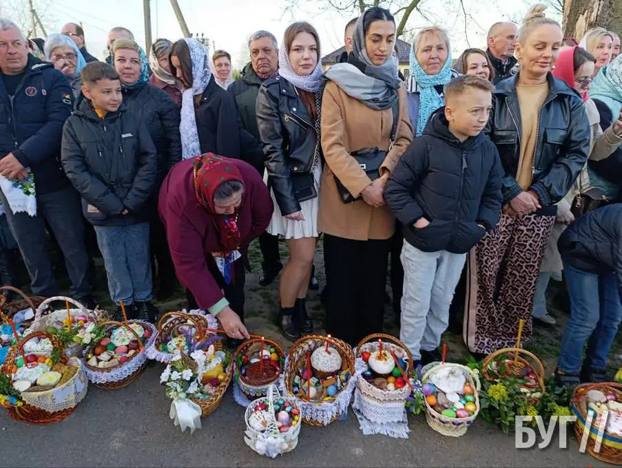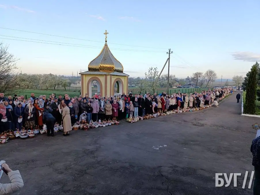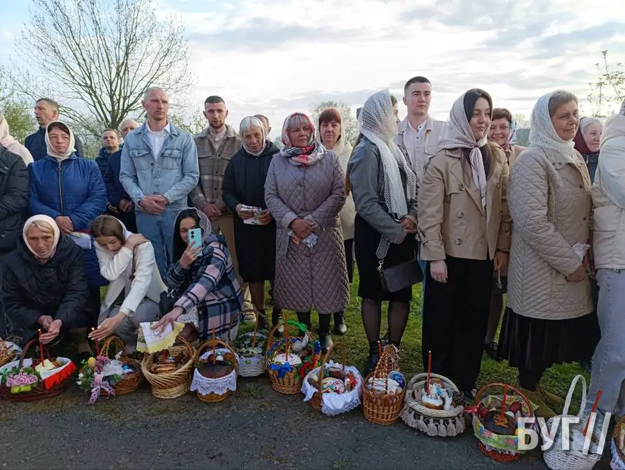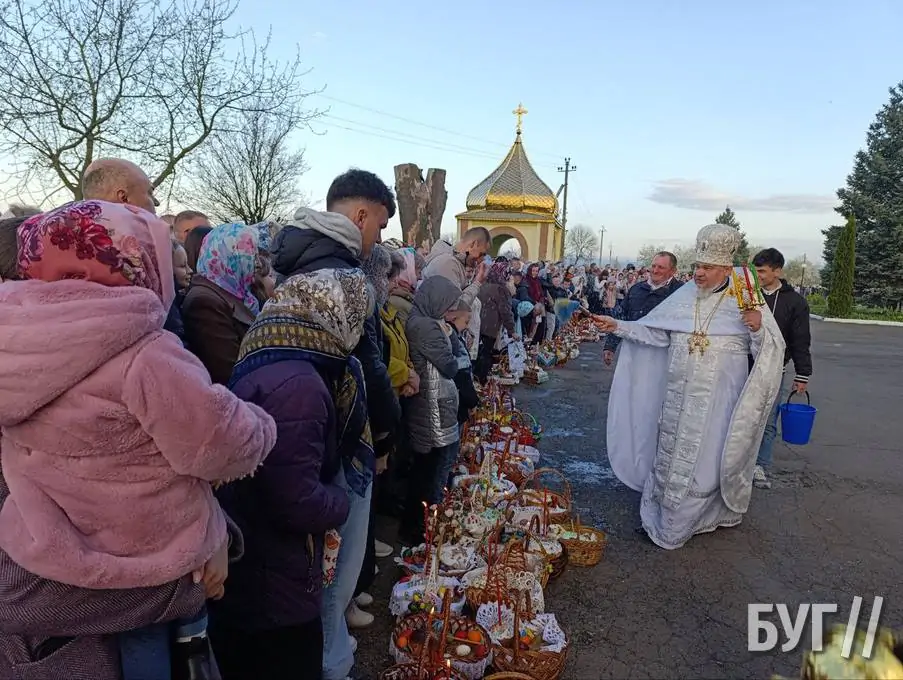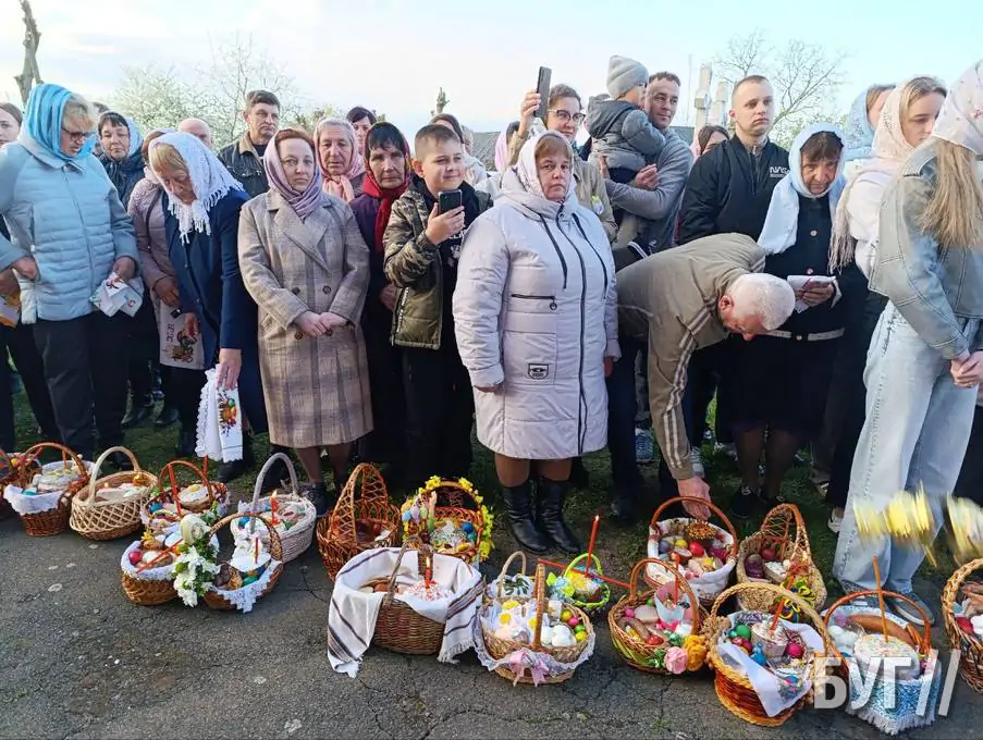 Після урочистої Великодньої служби відбулося освячення пасхальних кошиків. На вулиці обабіч храмів із кошиками та золотими вогниками свічок вишикувалися сотні жителів селища. Мешканці очікували обряду освячення великими родинами.