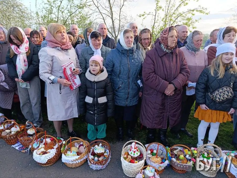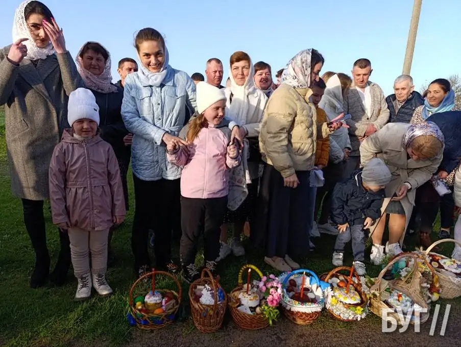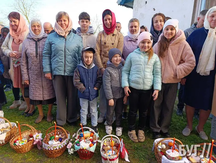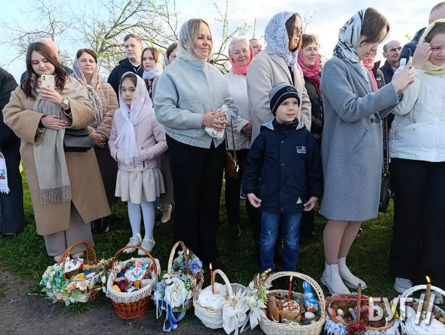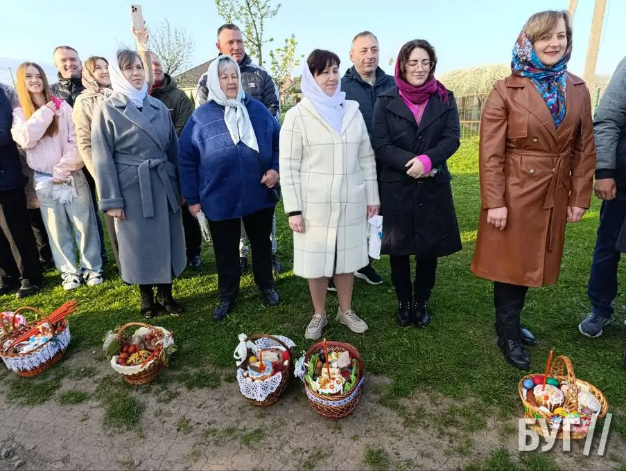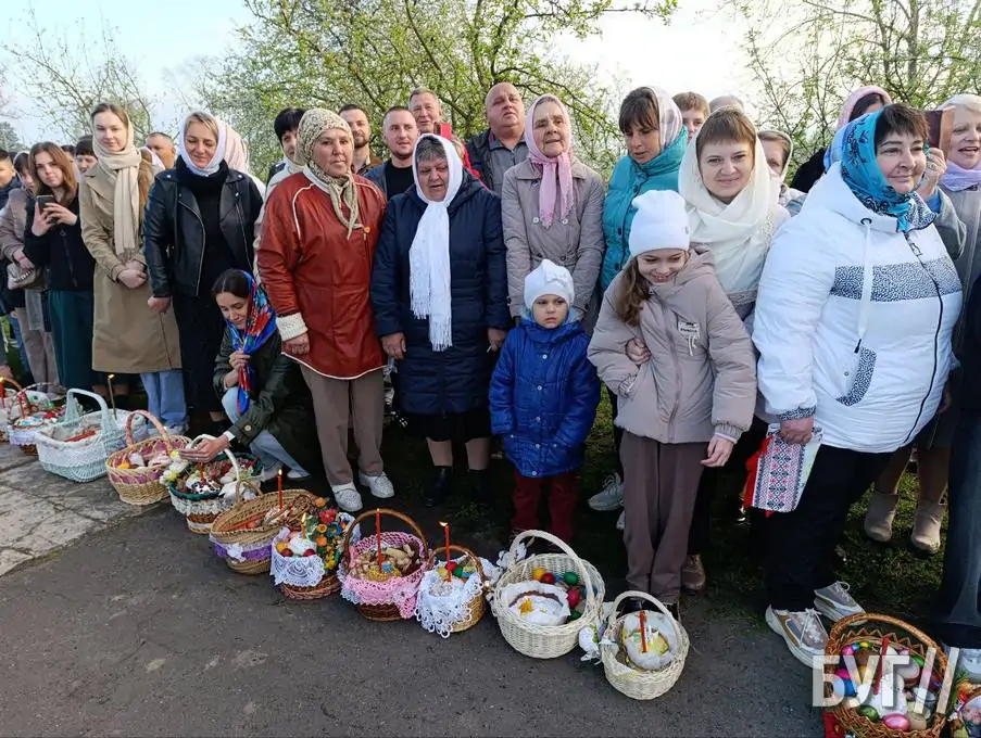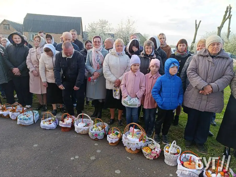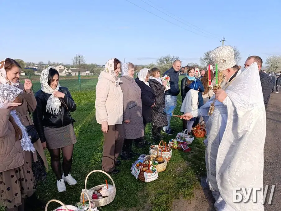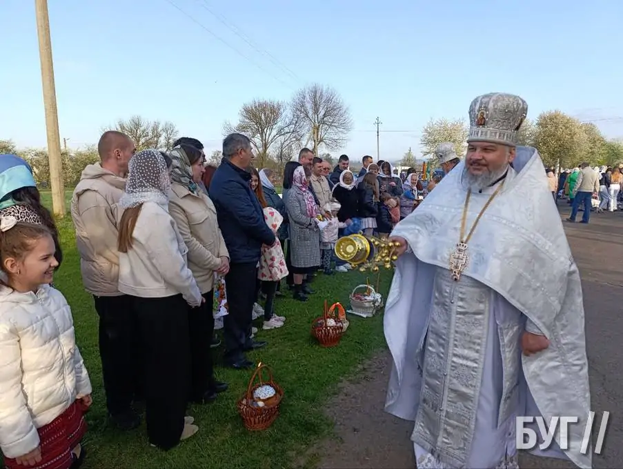 Після урочистої Великодньої служби відбулося освячення пасхальних кошиків. На вулиці обабіч храмів із кошиками та золотими вогниками свічок вишикувалися сотні жителів селища. Мешканці очікували обряду освячення великими родинами.