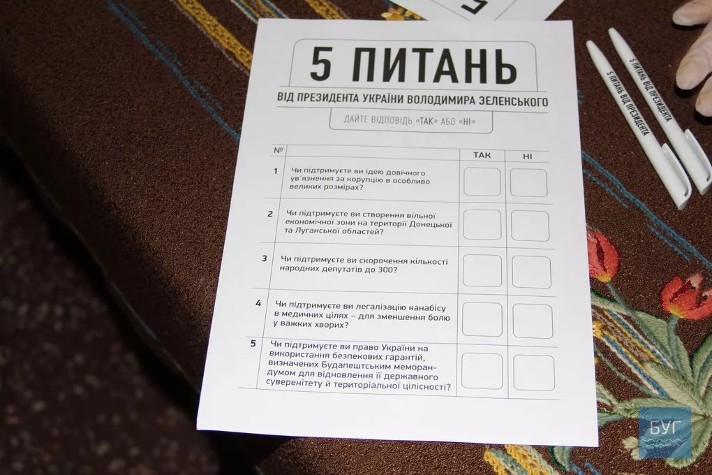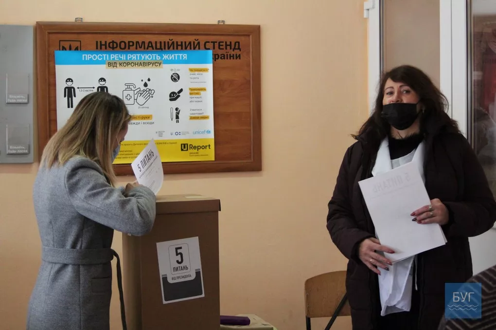 До речі, у кожній із трьох дільниць, у яких побували журналісти БУГу, перед входом виборцям пропонують взяти участь в опитуванні, ініційованому Президентом і відповісти на 5 питань. Щоправда, не усі голосуючі, зголошуються це робити. Чимало іваничівців проігнорувало його.