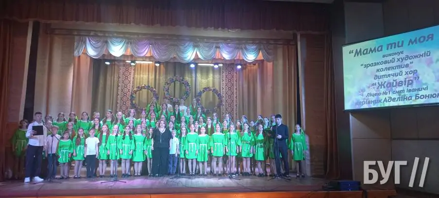 Свої вокально-хоровими та хореографічними талантами тішили присутніх дитячі творчі колективи та виконавці: дитячий вокальний колектив «Росинка», дует у складі Вероніки Новосад та Анни Сирник, тріо у складі Соломії Крась, Богдани Петрович та Світлани Сидчук, тріо у складі сестер Ангеліни і Вероніки Захарчуків та Марійки Чури, зразковий аматорський ансамбль танцю «Прибужаночка» та підготовча група ансамблю. Підбірку кращих пісень про маму підготували дитячі вокальні колективи ліцеїв №1 і №2. Зачарувала усіх глядачів своїм виступом наймолодша учасниця – вихованка місцевого дитсадочка Мілана Кононова.