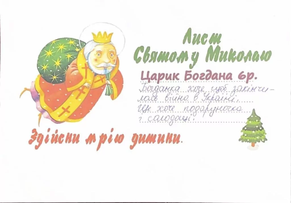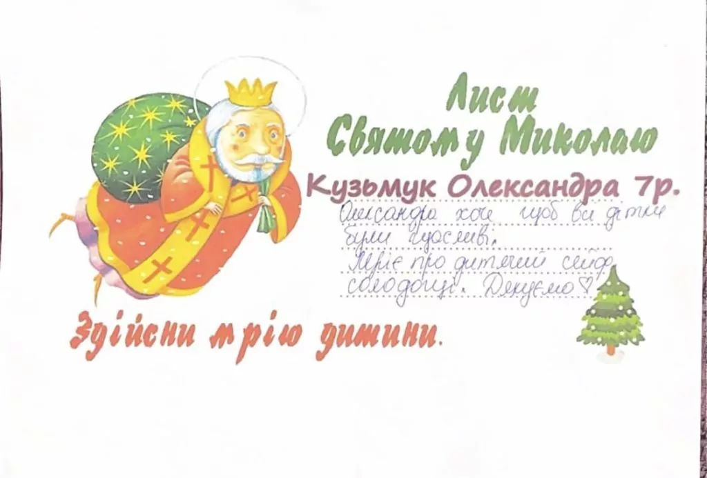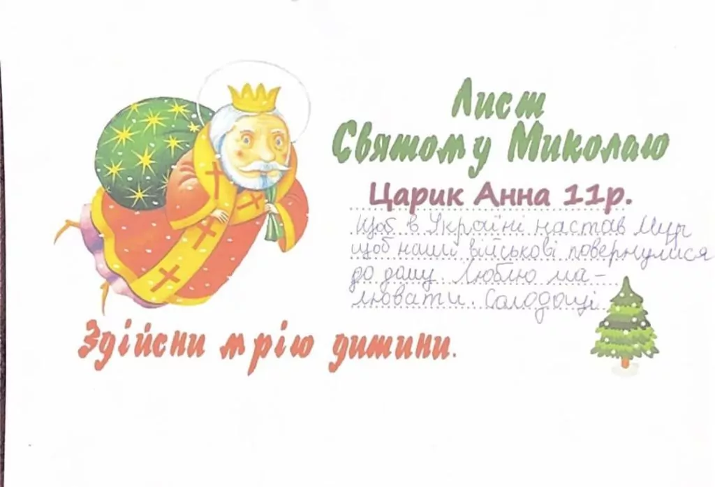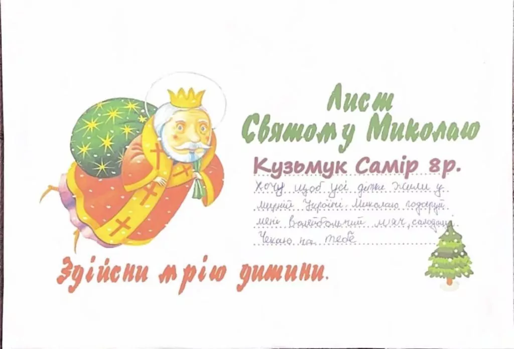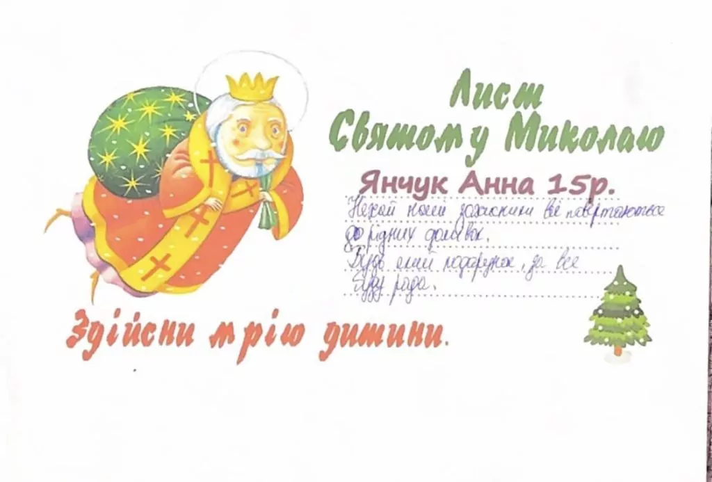 Організаторка зібрала і продовжує збирати дитячі листи до Святого Миколая, у яких ті написали про свої мрії та побажання. Долучитися до хорошої справи і стати Миколайчиком може кожен. Для цього потрібно придбати подарунок, який очікує побачити під своєю подушкою та чи інша дитина загиблого Героя.