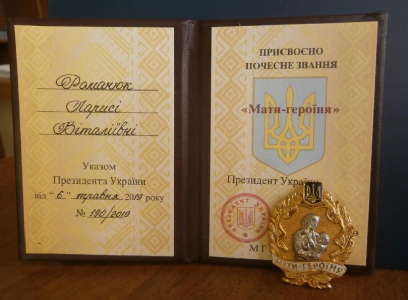 Відповідно до Указу Президента України від 6 травня 2019 року № 190/2019 за материнську самовідданість, зразкове виховання дітей, забезпечення умов для всебічного їх розвитку почесне звання «Мати-героїня» присвоєно Ларисі Віталіївні Романюк.