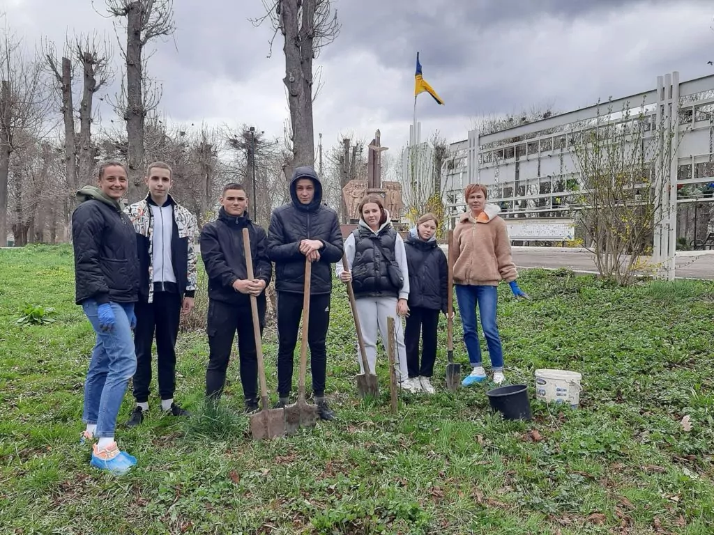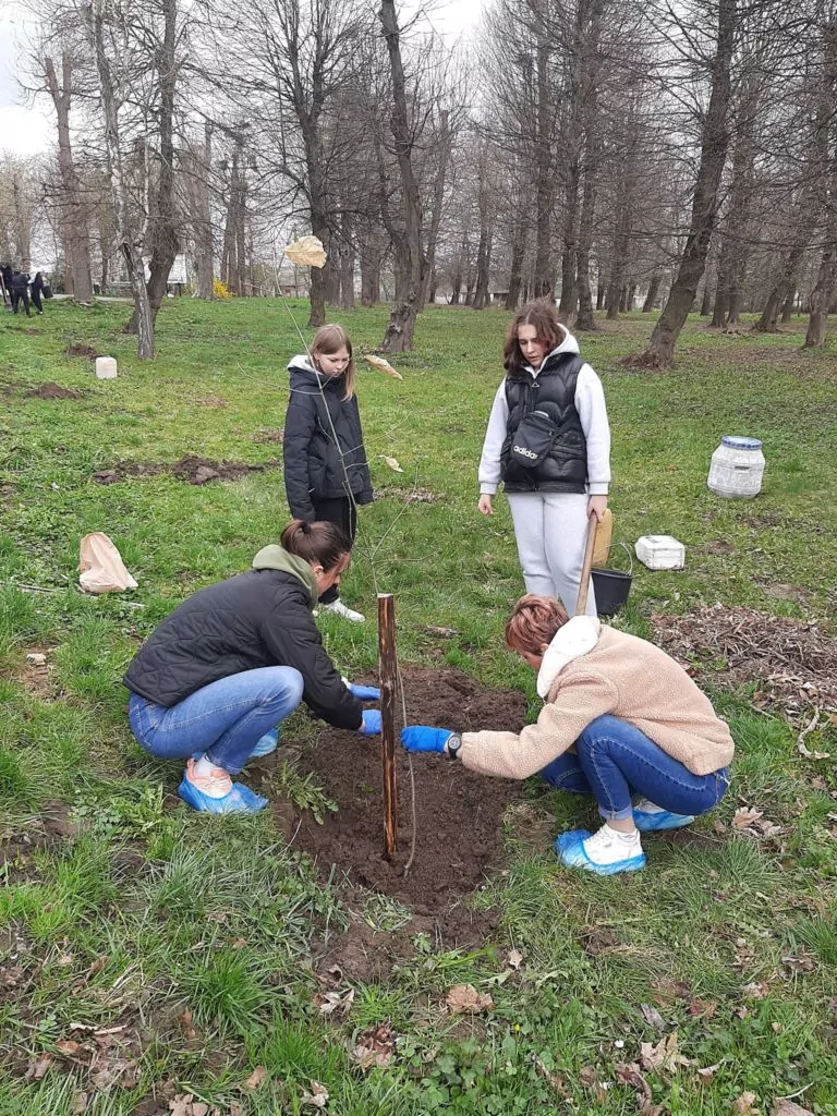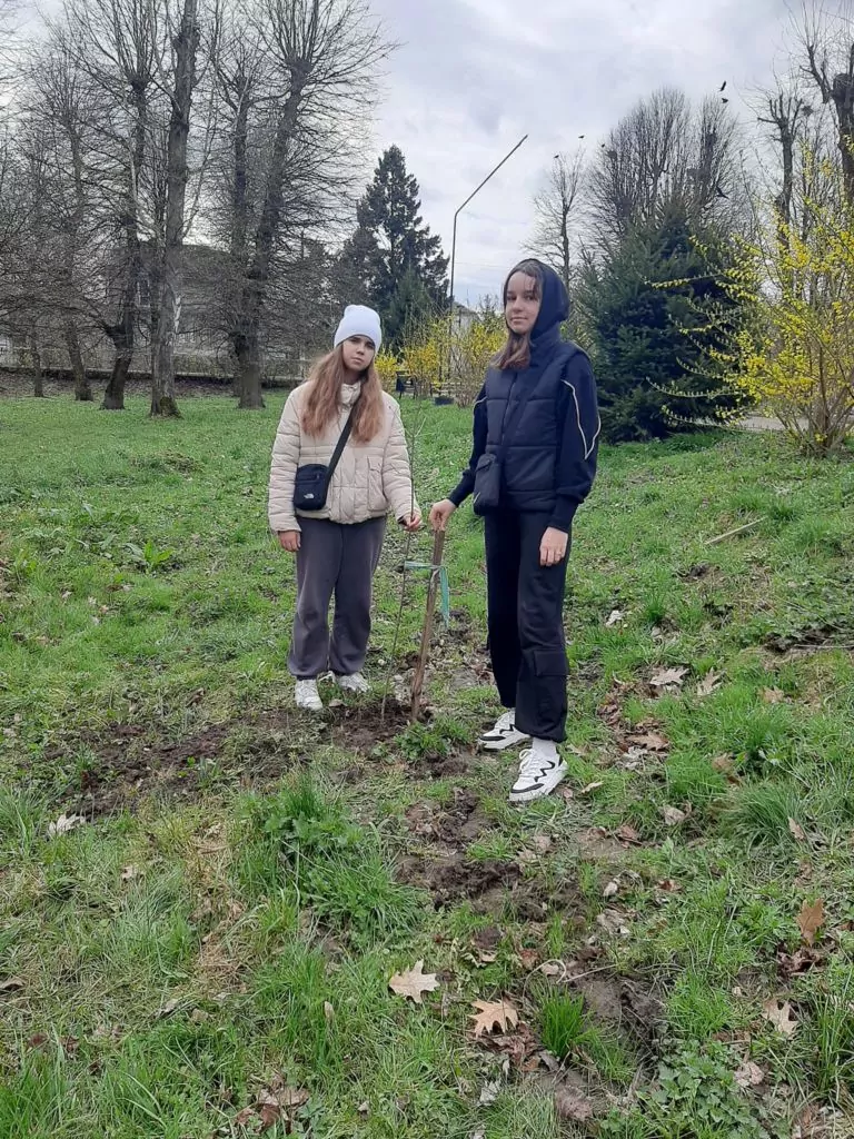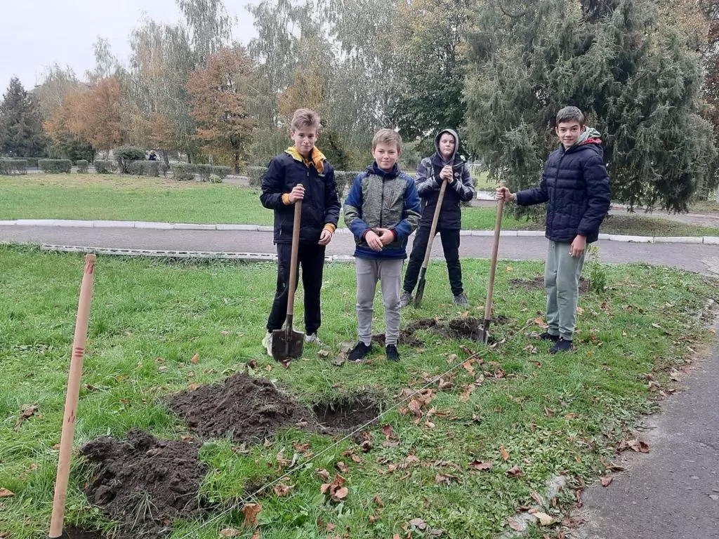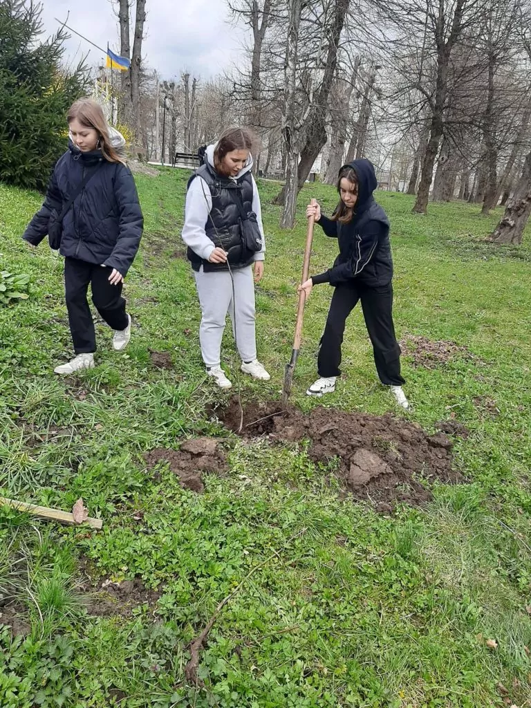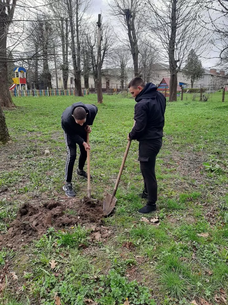 Але вже 3-го квітня на допомогу членам ГО «Спілка матерів військовослужбовців Іваничівщини» прийшли восьмикласники ліцею №1. Учні 8-Б і 8-В класів разом зі своїми класними керівниками Світланою Парафін і Тетяною Халімон, обкопали саджанці дубів в парку й підсадили нові, які привіз Євген Голодюк.