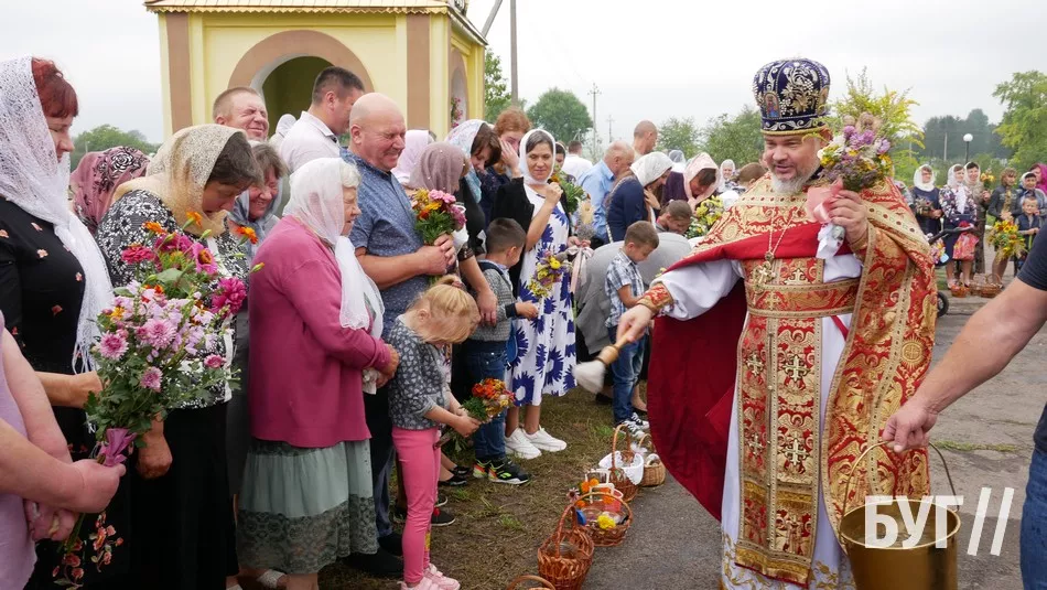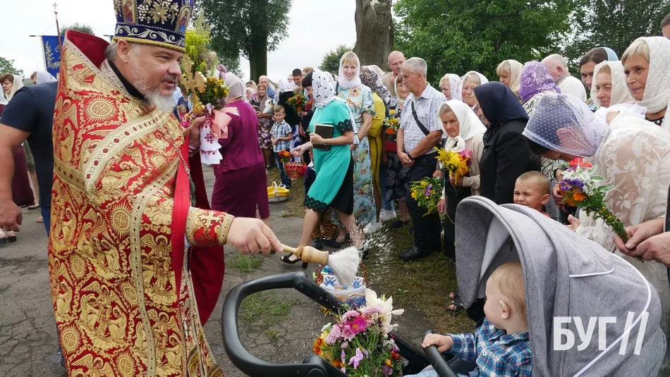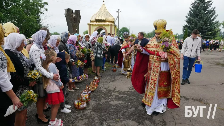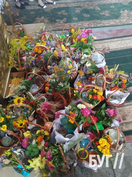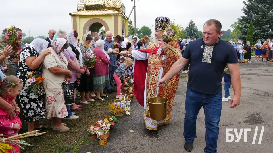 Після святкової служби на подвір’ї храму відбулося освячення води, а потому священники окропили нею те, що принесли жителі. В основному, це кошики з медом і маком та “маковійчики” – букети із польових трав і різноманітних квітів.